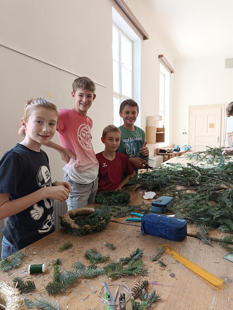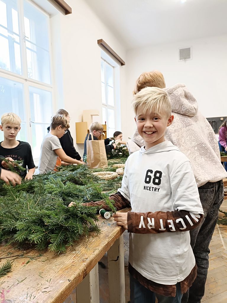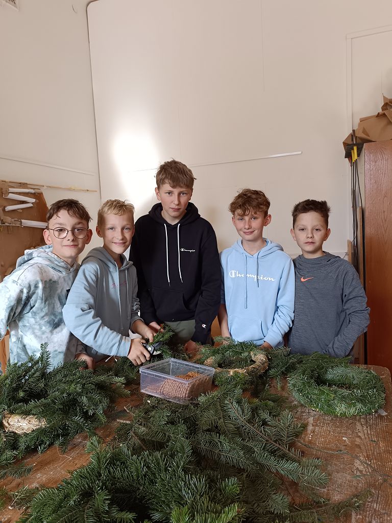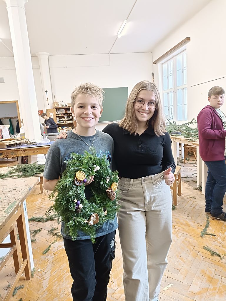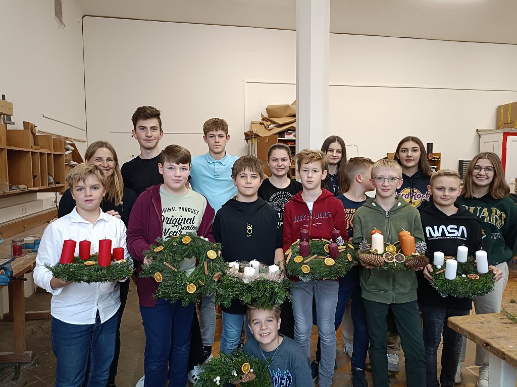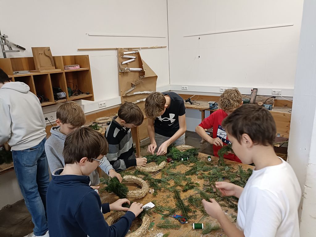 Dieses Jahr war es im Gegensatz zu den beiden letzten Jahren, die coronabedingt anders verliefen, wieder möglich, Adventkränze in der Schule zu binden.
