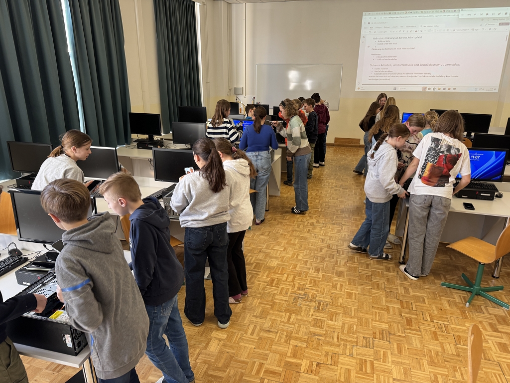 Im Informatikunterricht immer nur vor dem PC zu sitzen und das zu machen, was der Lehrer vormacht, wird mit der Zeit auch langweilig. Deshalb durften die Schülerinnen und Schüler der 2. Klassen im Informatikunterricht selbst Hand anlegen.