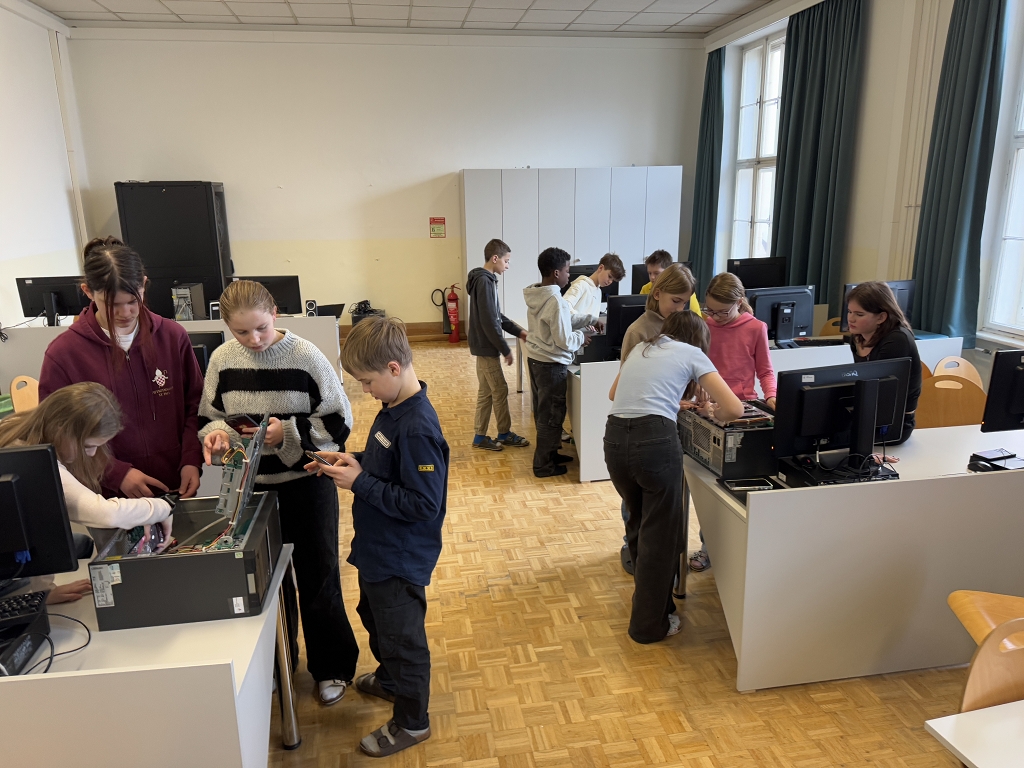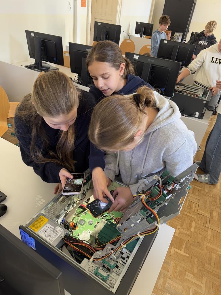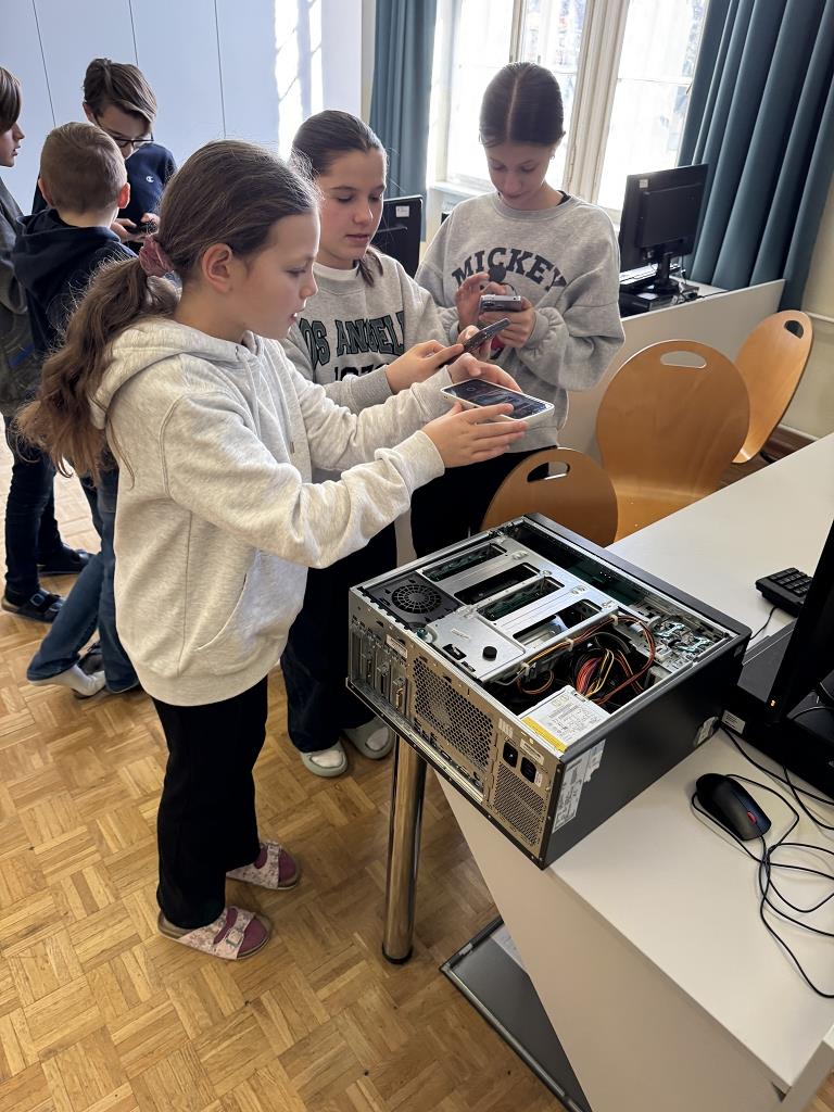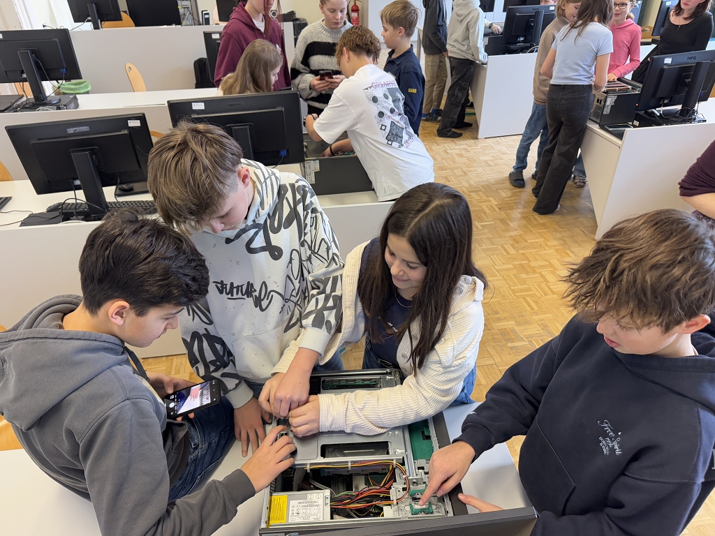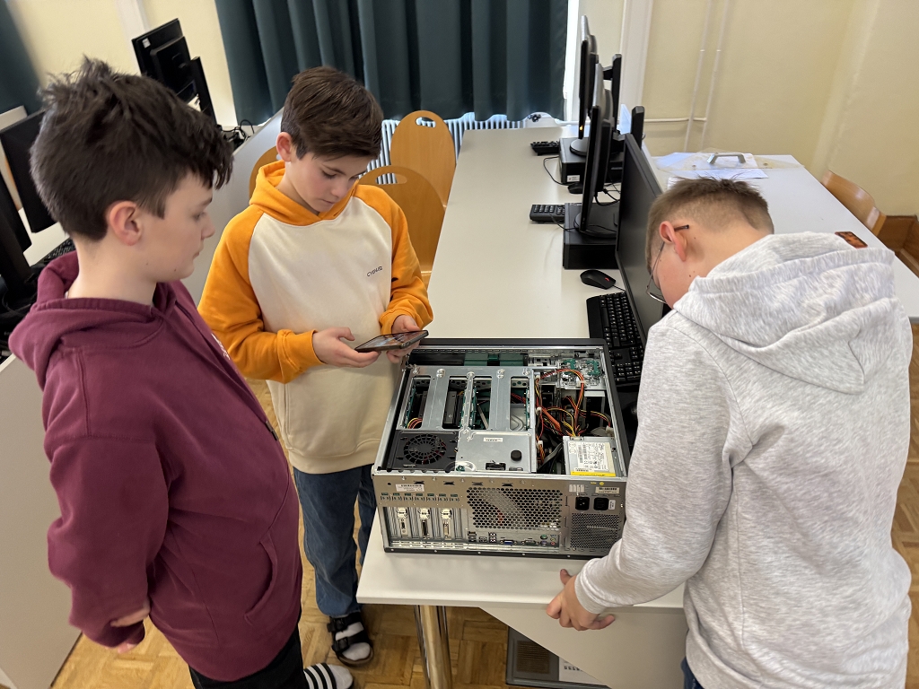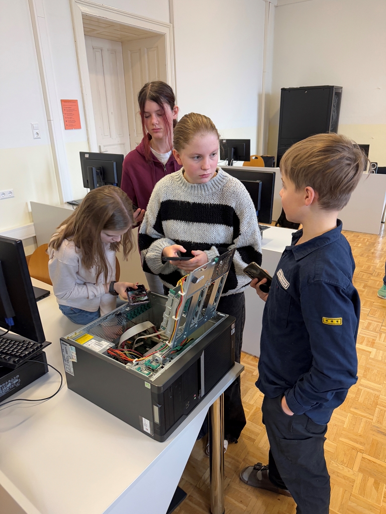 Unter fachkundiger Anleitung zerlegten sie einen Computer in seine Einzelteile - ein spannender Moment für alle! Doch damit nicht genug: Die wichtigsten Komponenten wie Prozessor, Arbeitsspeicher und Festplatte wurden nicht nur genau unter die Lupe genommen, sondern auch fotografiert und deren Funktion besprochen, um jedes Teil noch besser kennenzulernen.