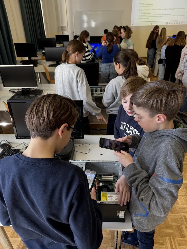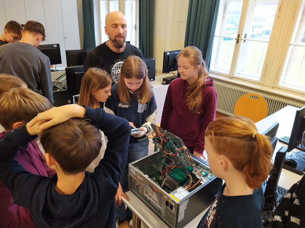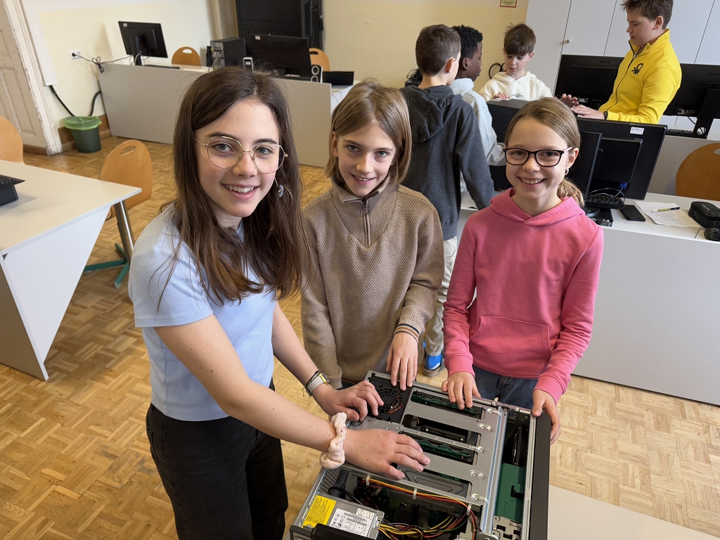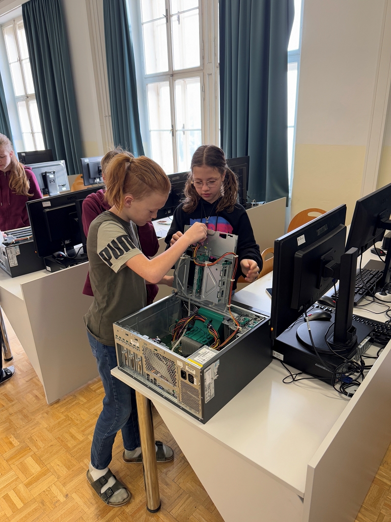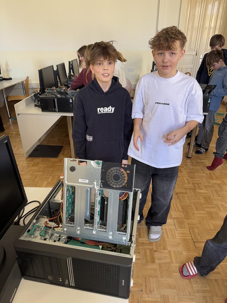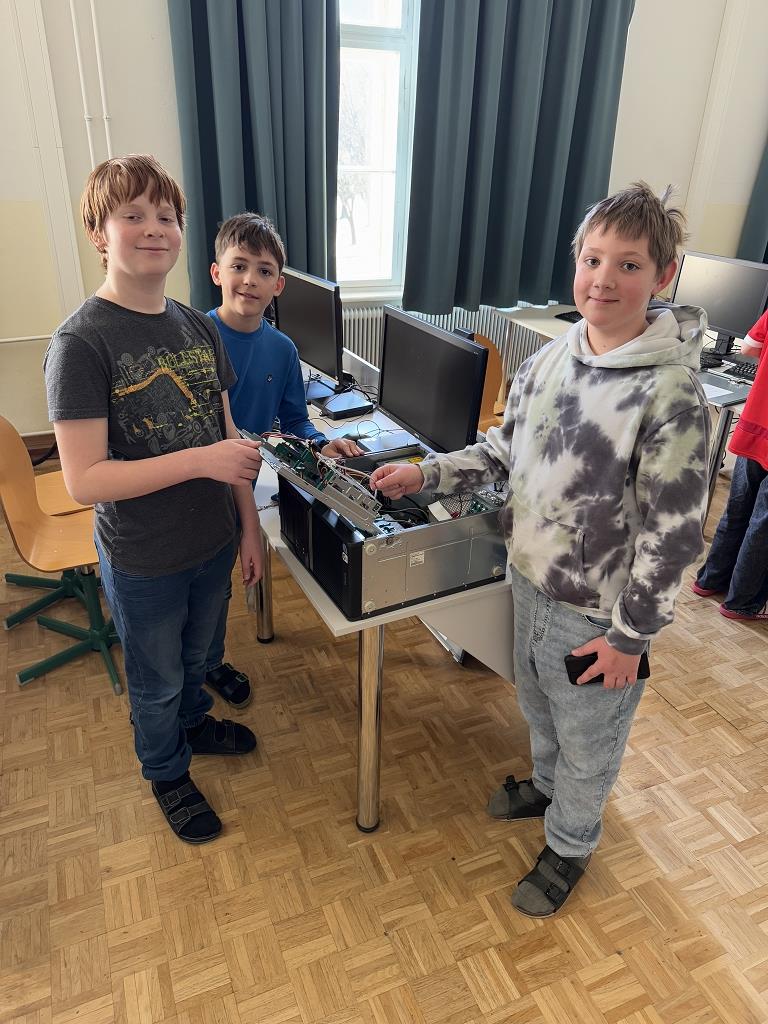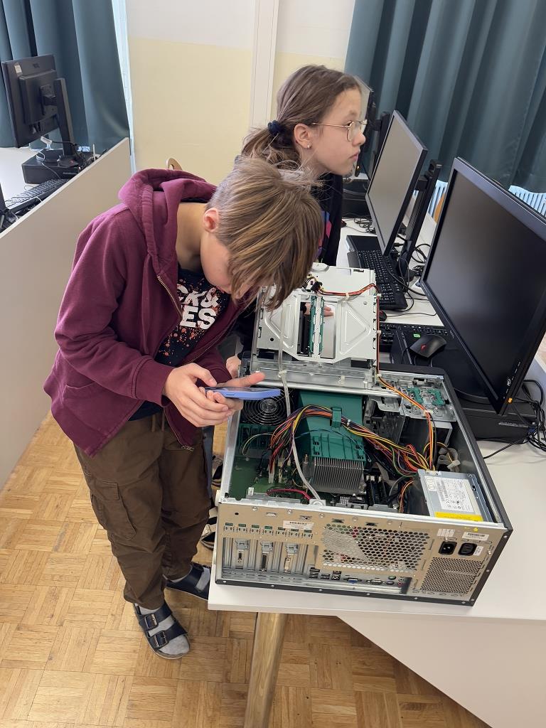 Unter fachkundiger Anleitung zerlegten sie einen Computer in seine Einzelteile - ein spannender Moment für alle! Doch damit nicht genug: Die wichtigsten Komponenten wie Prozessor, Arbeitsspeicher und Festplatte wurden nicht nur genau unter die Lupe genommen, sondern auch fotografiert und deren Funktion besprochen, um jedes Teil noch besser kennenzulernen.