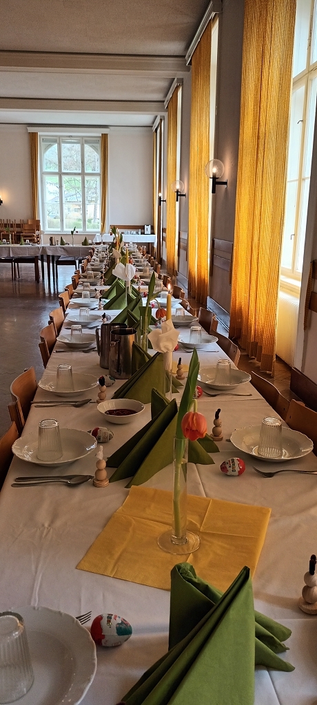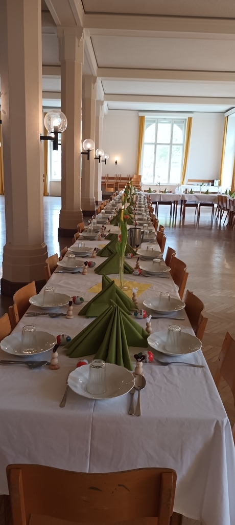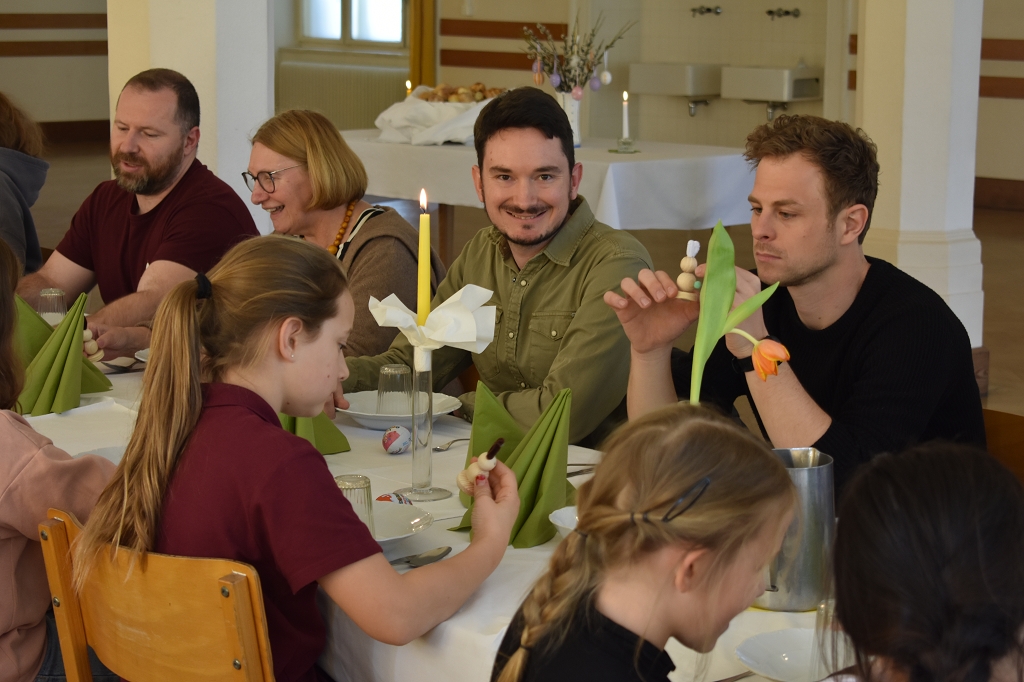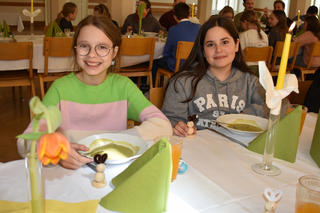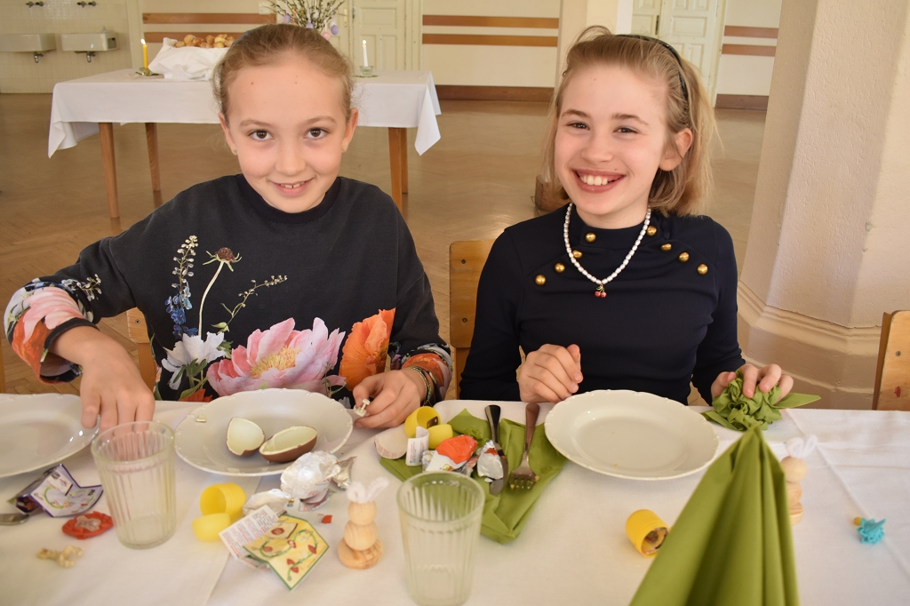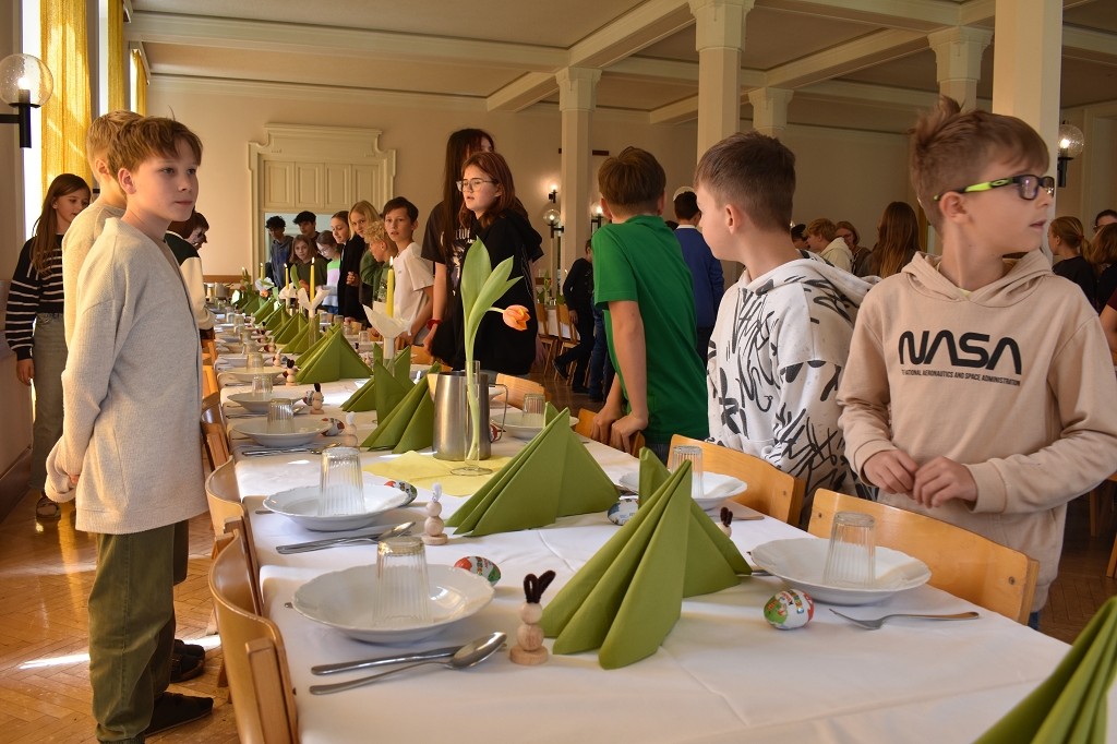 Im Vorfeld des Festes gestalteten die 3a und 3b Klasse unter der Anleitung von Mag. Evelyn Friesacher mit viel Kreativität und Engagement die österliche Dekoration. Diese wurde von Schülerinnen und Schülern der 1a und 3a Klasse gekonnt in die festlich gedeckte Tafel integriert.