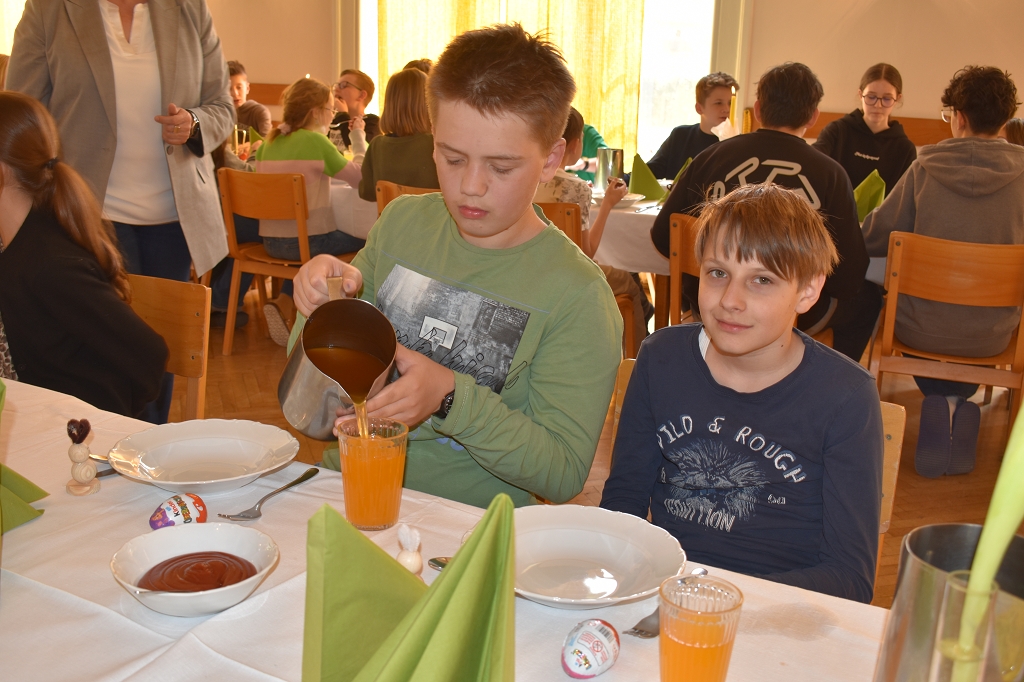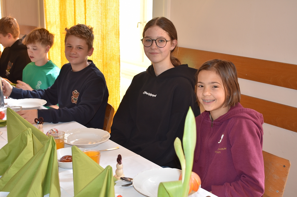Am 8. April 2025 feierte die Nachmittagsbetreuung des Stiftsgymnasiums St. Paul das traditionelle vorösterliche Essen, das die Vorfreude auf das bevorstehende Osterfest widerspiegelt. Diese Feierlichkeiten sind fest in unserer Schulgemeinschaft verankert und bieten eine Gelegenheit, den Zusammenhalt zu stärken und gemeinsam schöne Momente zu erleben.