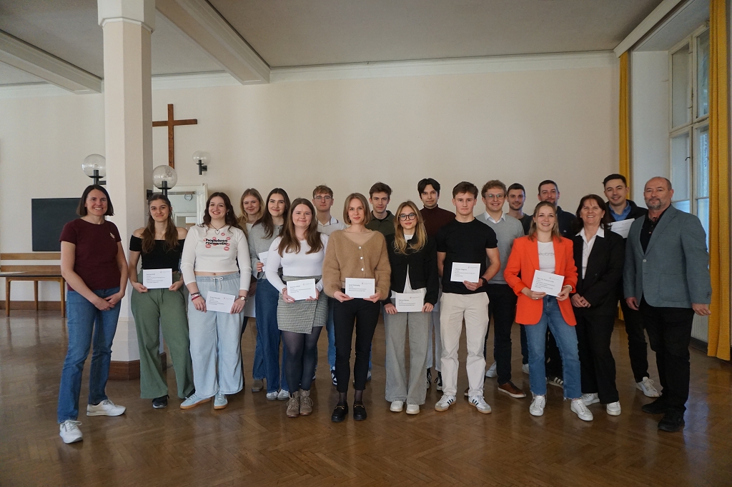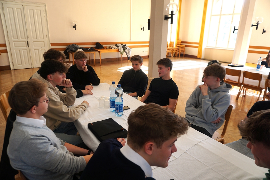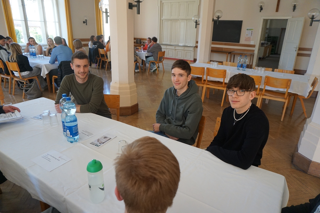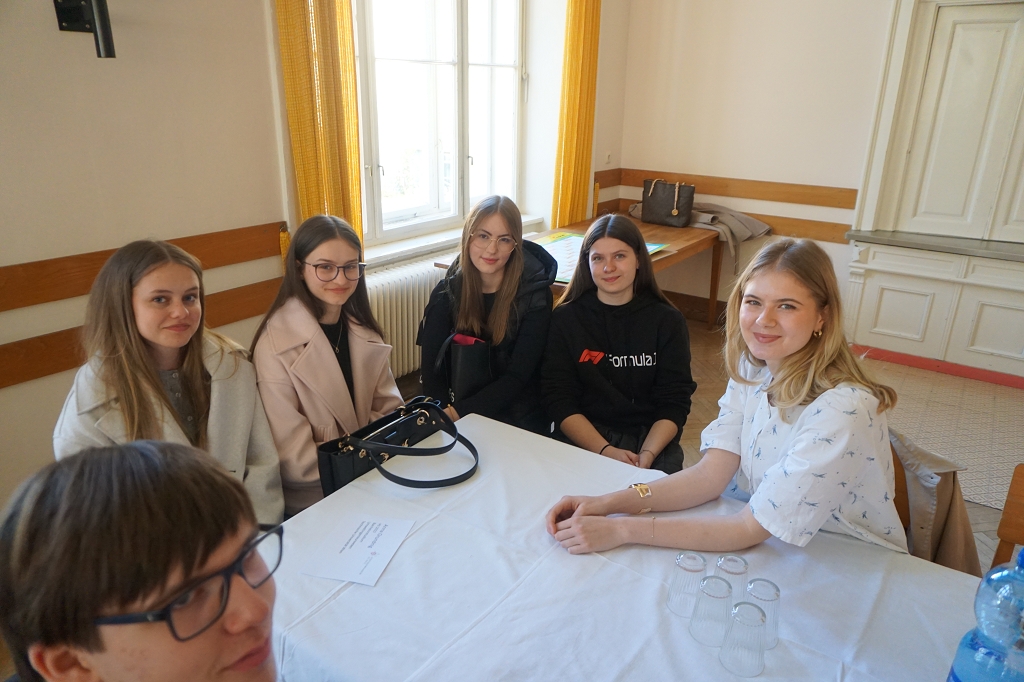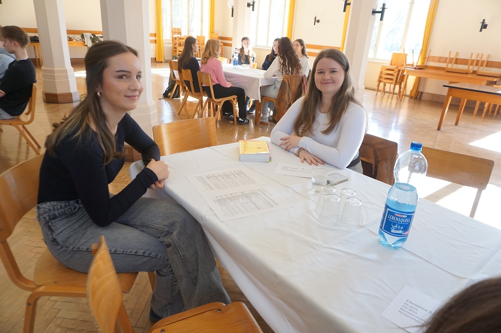 So kamen am 11. April 2025, dem letzten Tag vor den Osterferien, gleich 13 aktive Student:innen und drei Alumni im Speisesaal des Konviktes zusammen, um den Schüler:innen der 7. Klassen über ihre Studien Rede und Antwort zu stehen. Die beiden Schülerberater Monika Veidl und Günter Peter haben sich im Vorfeld bemüht, ein möglichst breit gefächertes Spektrum an Studienmöglichkeiten unter den Absolvent:innen der letzten Jahre zusammenzustellen.