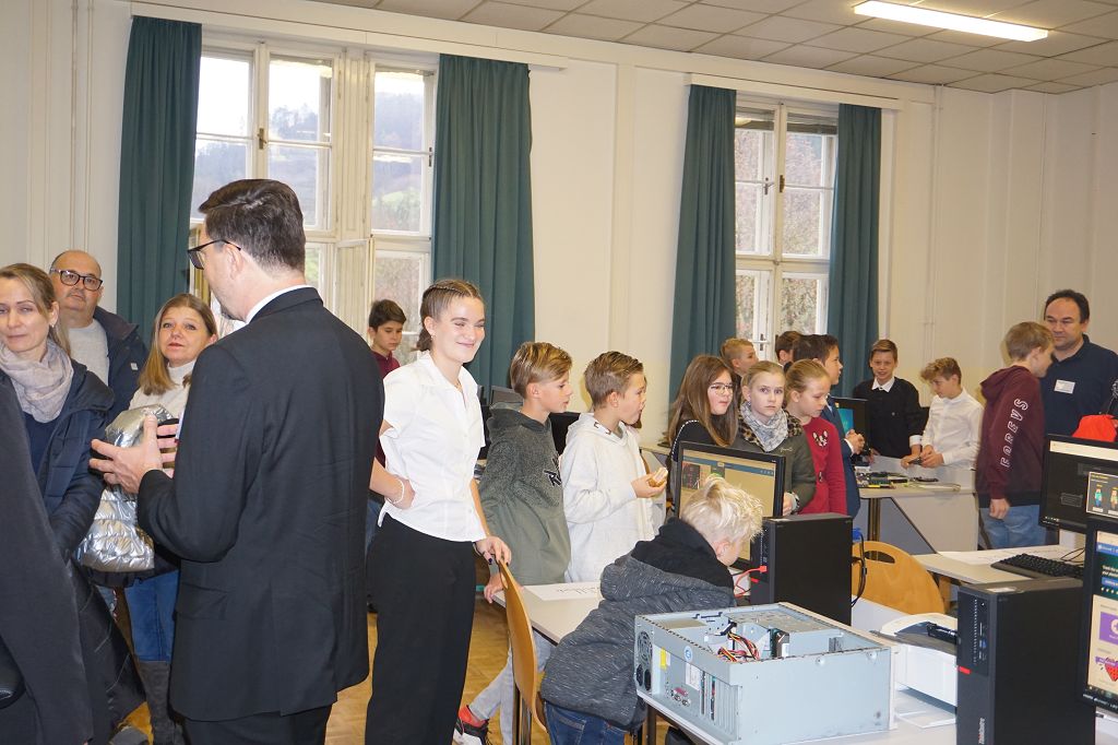 Im Konvikt gab es Vorträge des Schülerberaters, beide Bibliotheken waren für die Eltern, Schüler und Schülerinnen offen. Auch die kreative Seite der Schule wurde im Werkunterricht und Zeichenunterricht gezeigt. Im EDV-Raum konnten vibrierende Bienen und elektrische Fahrzeuge programmiert oder mit einem 3D-Pen gezeichnet werden. In der Turnhalle ging es sportlich rund, denn die Schülerinnen und Schüler zeigten in verschiedenen sportlichen Disziplinen wie Badminton, Volley- und Basketball sowie in akrobatischen Übungen wie Slacklining, Bockspringen oder Turnen mit den Ringen und dem Stufenbarren ihr Können und wurden dabei von Turnprofessoren betreut.