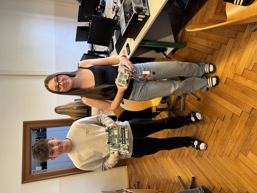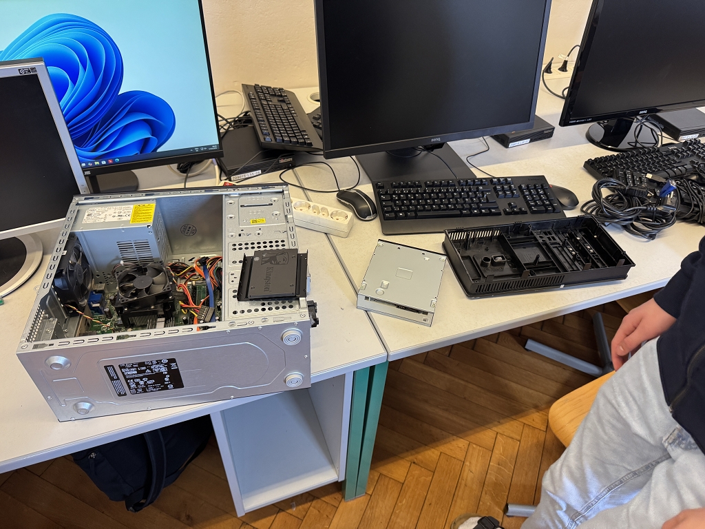 Aus diesem Grund haben sich die Schülerinnen und Schüler der 5. Klassen im Informatikunterricht bei Frau Prof. Hermine Bürger und Herrn Prof. Siegfried Wernig intensiv mit dem Aufbau und der Wartung von Computern beschäftigt. Über mehrere Wochen hinweg lernten sie, Computer fachgerecht zu zerlegen, das Innenleben zu reinigen und die Komponenten wieder korrekt zusammenzusetzen. Dabei wurden potenzielle Fehlerquellen erkannt, auftretende Probleme analysiert und mithilfe von Internetrecherche eigenständig Lösungen gefunden – bis hin zum erfolgreichen Start des Betriebssystems.