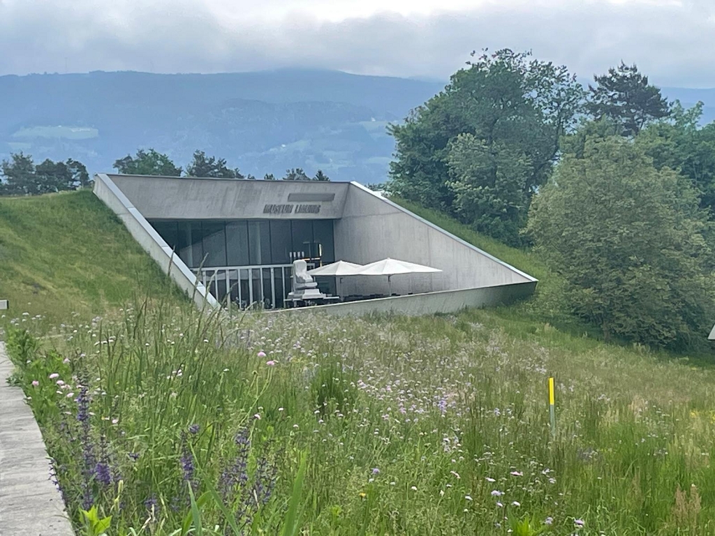 Unser Besuch im Museum begann eindrucksvoll – schon das Gebäude selbst, halb in den Hügel eingelassen, war ein erstes Highlight. Gemeinsam mit unserer Museumsführerin betraten wir durch einen langen Tunnel die Welt der Kunst, ein symbolischer Übergang, wie sie uns erklärte.