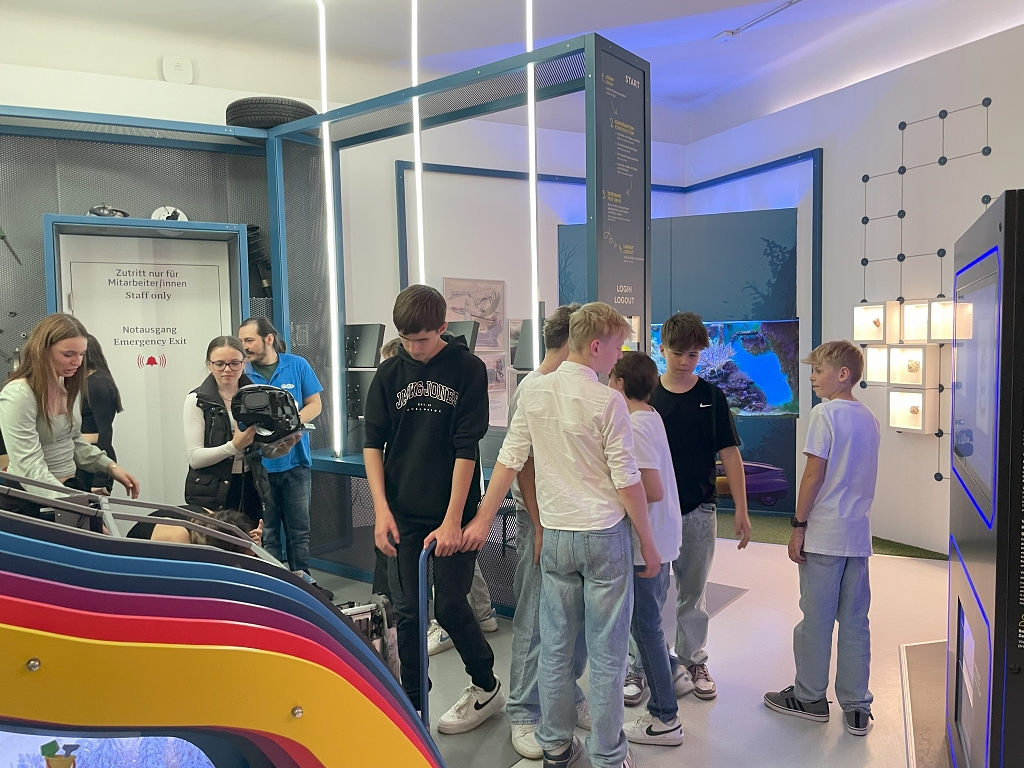 Bereits nach der 6. Stunde fuhren wir mit dem Bus nach Graz. Der erste Programmpunkt war das Center of Science Activities, kurz CoSA, im Joanneumsviertel. Dort hatten wir eineinhalb Stunden Zeit, verschiedene wissenschaftliche Teilbereiche zu entdecken und zu erkunden. Neben einer medizinischen Forschungsreise konnten wir ein fantastisches Fahrzeug entwickeln oder einfach unbeschwert technischen und naturwissenschaftlichen Zusammenhängen auf den Grund gehen. Danach durften wir bis zum nächsten Programmpunkt die Zeit frei nutzen. Einige besuchten das Museum für Volkskunde, andere sorgten für ihr leibliches Wohl.