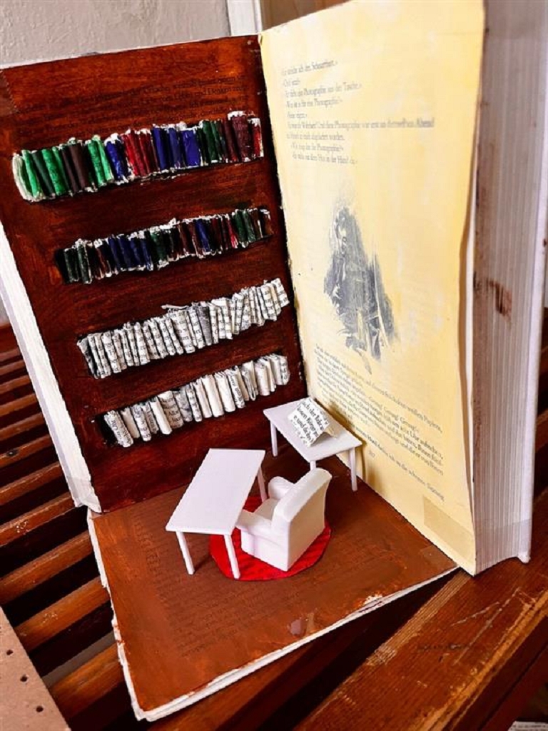 Bücher sind mehr als nur Ansammlungen von Seiten. Sie können Fenster in andere Welten, Türen zu unendlichen Geschichten und Schätze von Wissen und Fantasie sein. Daher nahmen die Schüler: innen der 7. Klassen den Tag des Buches am 23. April zum Anlass, um sich mit alten Büchern künstlerisch auseinanderzusetzen. Ziel war es, über die Magie von Büchern nachzudenken und diese zum Ausdruck zu bringen. Die dabei entstandenen Unikate können in der Schulbibliothek sowie bei der Schulfestausstellung bestaunt werden.