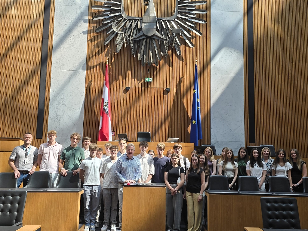 Den Abschluss des Wienaufenthaltes bildete ein EU-Schwerpunkt im "Erlebnis Europa". Hier schlüpften die Schülerinnen und Schüler in die Rolle von EU-Abgeordneten. Sie bildeten fiktive Fraktionen, verhandelten untereinander und erkundeten verschiedene Perspektiven, um einen gemeinsamen Konsens zu finden – ein praxisnahes Erlebnis, das die Abläufe der Gesetzgebung in der EU anschaulich verdeutlichte.