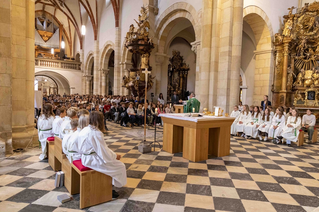 Mit einem Eröffnungsgottesdienst am 10. September begann das Stiftsgymnasium St. Paul das neue Schuljahr 2025/26. Traditionell wurde in der romanischen Stiftskirche gefeiert, um die enge Verbindung von Schule und Stift hervorzuheben. Unter der Leitung von Prof. Justus Eberl-Seger gestaltete der Schulchor den Gottesdienst musikalisch, während das schuleigene Bläserensemble unter der bewährten Führung von Prof. Thomas Zdravja für ein fulminantes Intro sorgte.