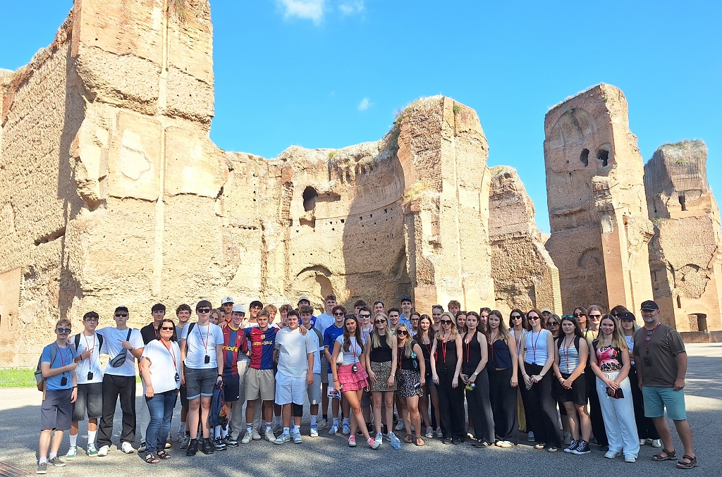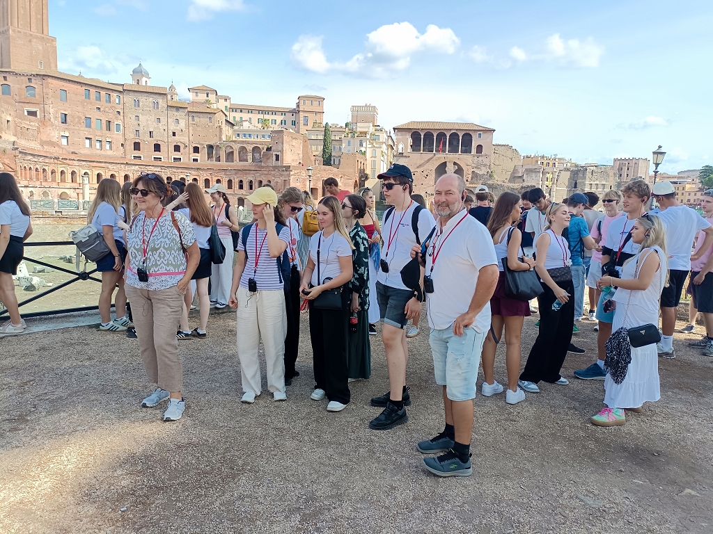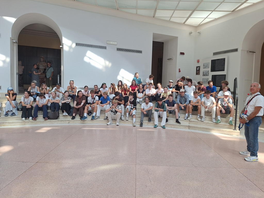 Es ist mittlerweile eine jahrelange Tradition am Stiftsgymnasium, dass die Maturaklassen ihre projektorientierten Reisen in der Oberstufe mit einer Fahrt nach Rom abschließen. So waren auch heuer 50 angehende Maturant:innen mit ihren Begleitlehrer:innen Prof. Günter Peter (Leitung), Prof. Christa Posposchil und Prof. Gerlinde Peter sieben Tage unterwegs, um nicht nur die „ewige Stadt“ zu erkunden, sondern auch abseits des antiken Roms auf Spurensuche des kulturellen Erbes Italiens zu gehen.
