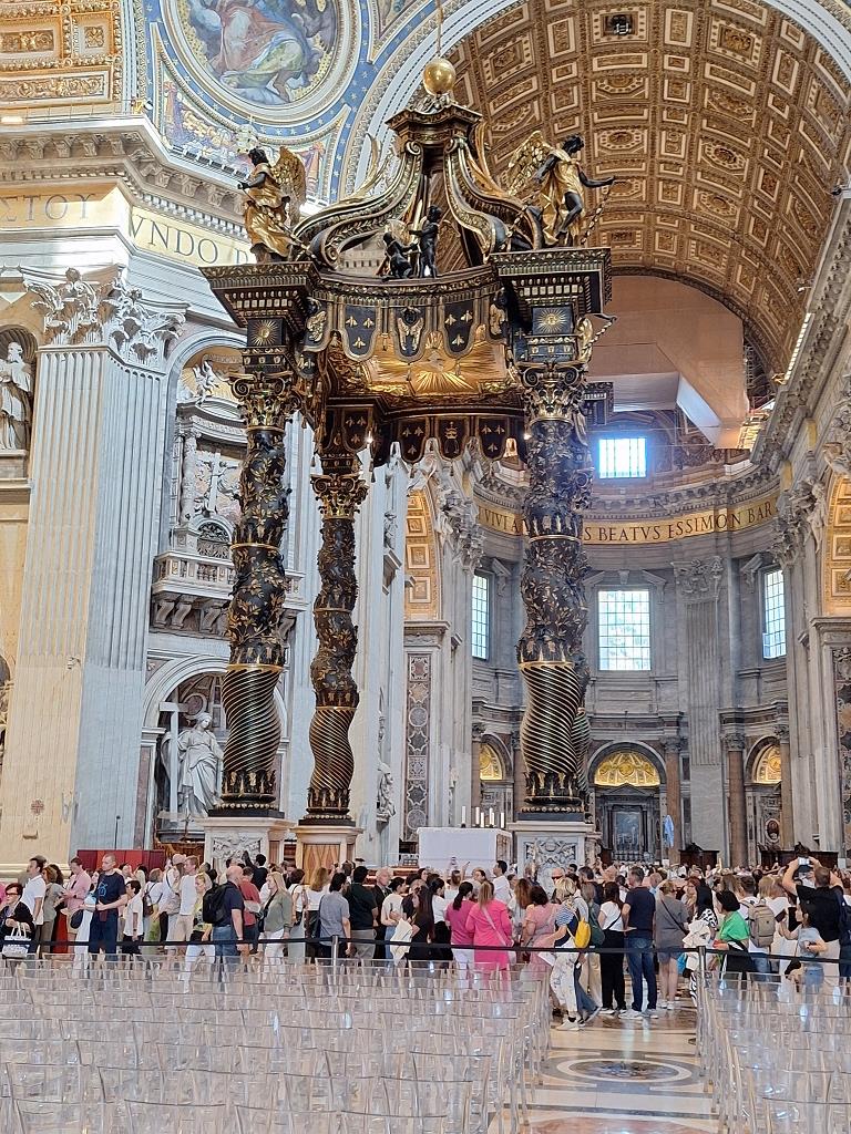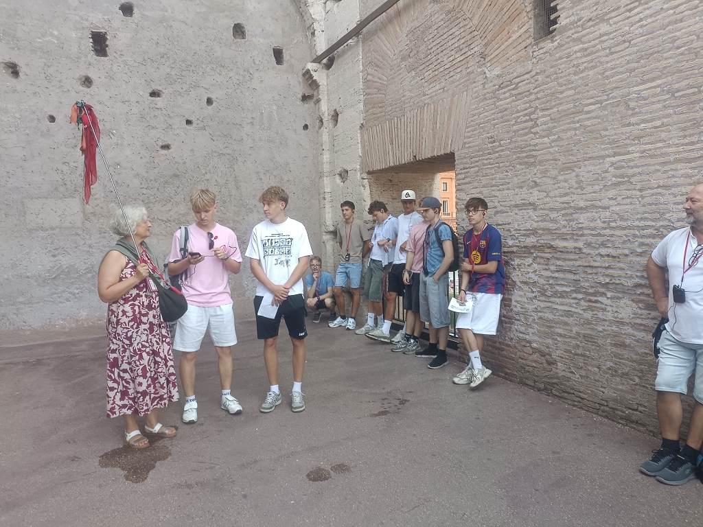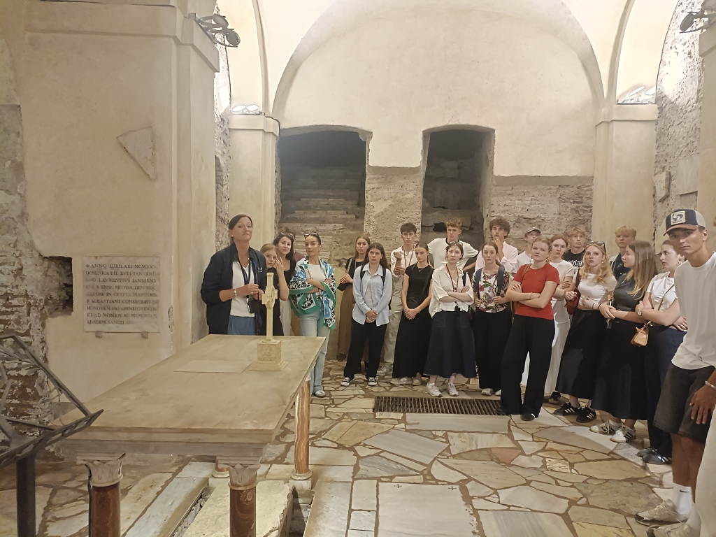 Dass aufgrund des „Heiligen Jahres – 2025“ mehr als sonst Besucher vor Ort sein würden, war eine Befürchtung aller, hat sich aber nicht unbedingt bestätigt. Natürlich war das Touristenaufkommen, v.a. in den Papstbasiliken, höher, aber nicht überbordend. So waren die Besuche im Petersdom, in der Lateranbasilika und natürlich in der von Benediktinern betreuten Basilika San Paolo fuori le mura eindrucksvolle Erlebnisse, hat man doch nur alle 25 Jahre die Möglichkeit, die jeweilige „Porta Santa“ der Kirchen zu durchschreiten. Ein höchst interessanter Gang durch die Katakomben des Hl. Sebastian rundete das Bild des christlichen Roms für alle ab. Das absolute Highlight für die Schüler:innen war aber - nach erfolgter Evaluation - die Papstaudienz, die jeden Mittwoch am Petersplatz durchgeführt wird und heuer in sehr hohem Maße von den Besuchern in Anspruch genommen worden war. Selten war der Platz vor dem Petersdom so gefüllt, als Papst Leo XIV. durch die Mengen fuhr und voller Freundlichkeit und Offenheit die Pilger:innen begrüßte.