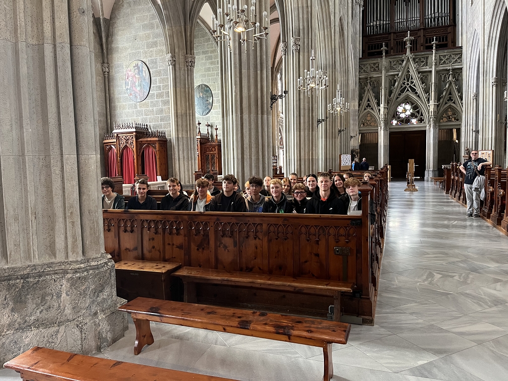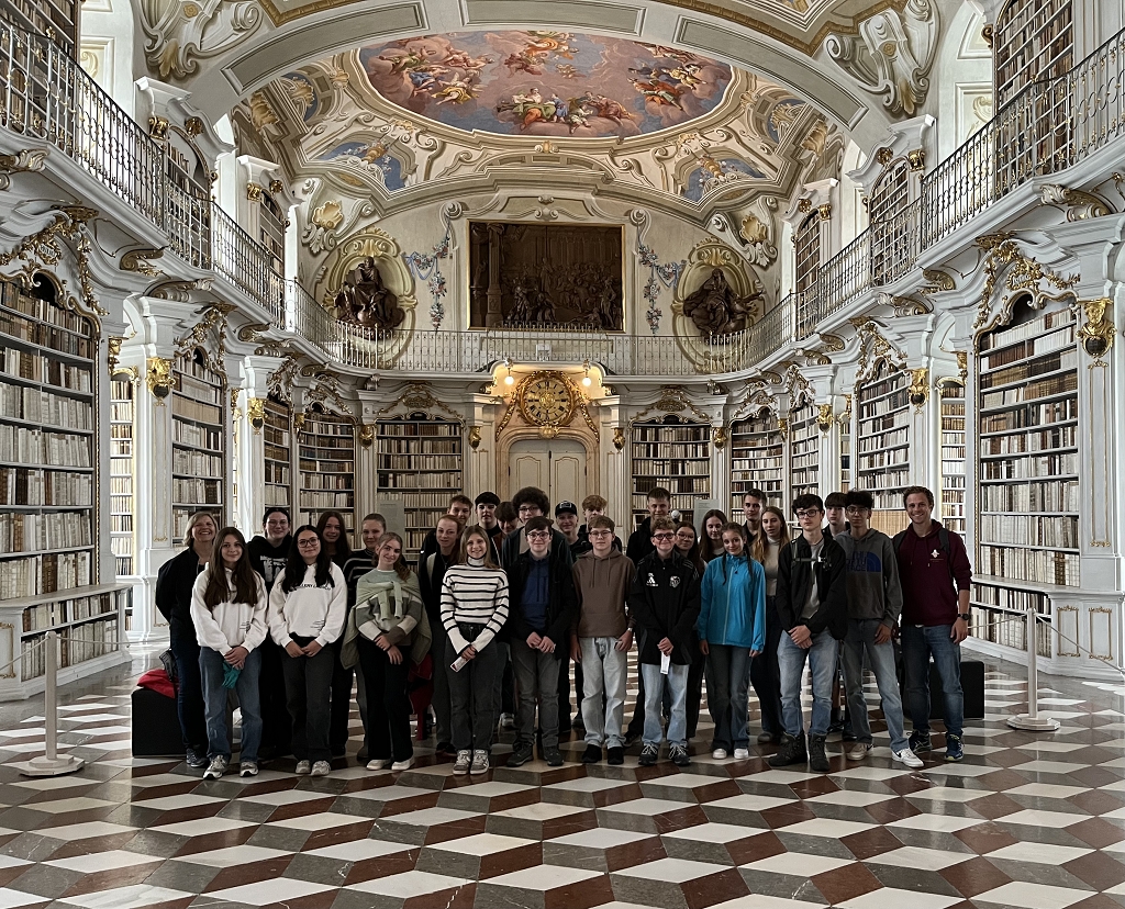 Gemeinsam kochten und versorgten sich die Schülerinnen und Schüler selbst und wuchsen dabei schnell zu einer funktionierenden Gemeinschaft zusammen. Auf dem Programm standen spannende Aktivitäten wie eine Rundwanderung zum Wasserfall, lustige Kennenlernspiele sowie eine Wanderung nach Admont. Bei letzterem erwartete die Klasse ein besonderes Highlight – eine Führung durch die weltberühmte und wunderschöne Stiftsbibliothek sowie ein Rundgang durch die Stiftskirche. Auch abends warteten besondere Erlebnisse: eine Nachtwanderung mit Blick in den Sternenhimmel sowie ein gemütliches Lagerfeuer, bei dem Würstel, Stockbrot und Marshmallows gegrillt wurden.