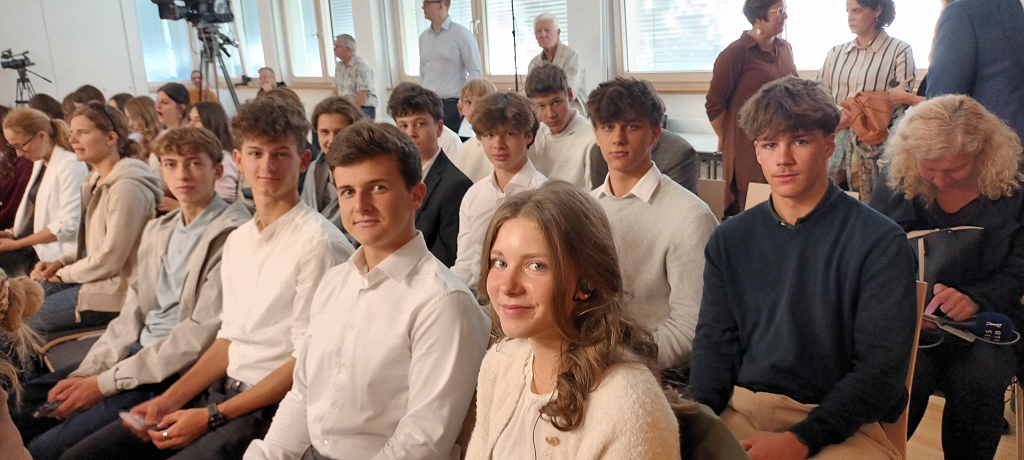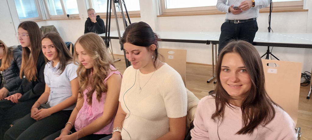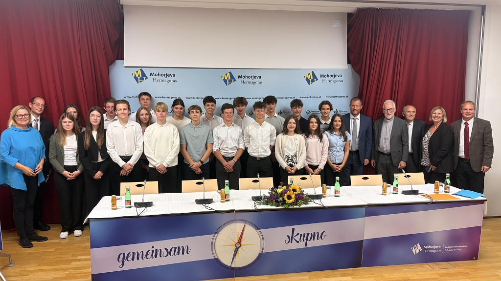 Am Donnerstag, dem 25.09.2025, hatte die 7b Klasse die Möglichkeit ihr Video in den Räumlichkeiten der Hermagoras in Klagenfurt einer breiten Öffentlichkeit vorzustellen. Begeistert vom Engagement und der Kreativität der Schülerinnen und Schüler des Stiftsgymnasiums St. Paul zeigten sich Diözesanbischof Msgr. Dr. Josef Marketz, Dr. Karl Hren (Direktor der Hermagoras), Moderator DDr. Jürgen Pirker (Leiter des Fachbereichs Global Governance am Institut für Rechtswissenschaftliche Grundlagen der Karl-Franzens-Universität Graz), Dr. Kathrin Stainer-Hämmerle (Politikwissenschaftlerin) sowie die Projektpartner des Interreg Projektes Lingua.