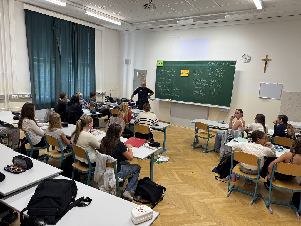 Auch in diesem Jahr fand eine Vortragsreihe für die 1. bis 4. Klassen der Unterstufe statt (06.-09. Oktober 2025). Es standen dabei die Themen Cybermobbing (1. und 2. Klassen), Präventive Rechtsaufklärung/Jugendschutzgesetz (3. Klassen) sowie Jugendstrafrecht (4. Klassen) im Mittelpunkt. Die Vorträge dauerten jeweils zwei Unterrichtsstunden, also eine Doppelstunde.