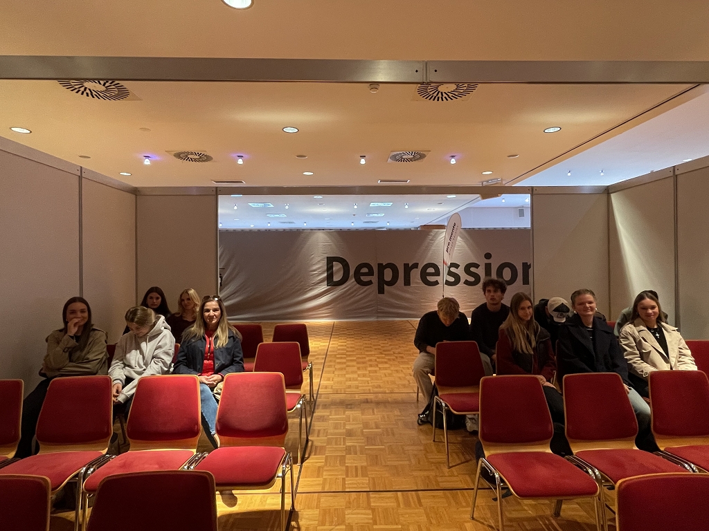 In drei interaktiven Stationen konnten die Schüler:innen erfahren, wie sich Depressionen, Schizophrenie und Alkoholismus anfühlen können.