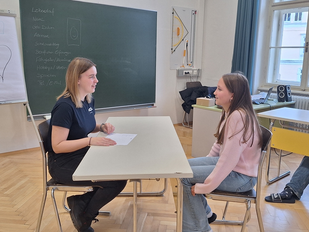 Bei der Simulation von Bewerbungsgesprächen mussten die Schülerinnen und Schüler selbst aktiv werden, was Ihnen sichtlich Freude bereitete.