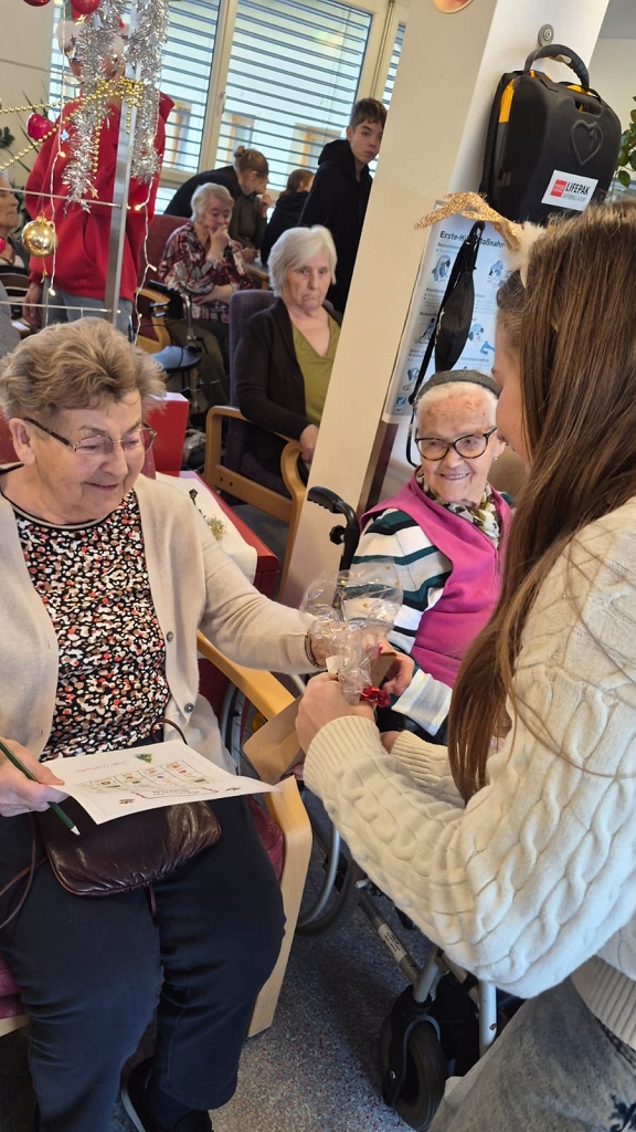 Mit Gedichten, musikalischen Beiträgen und vor allem mit viel Offenheit und Herzlichkeit gestalteten die Schülerinnen und Schüler einen stimmungsvollen Nachmittag, der viele berührende Momente schenkte. Ein besonderes Highlight waren die liebevoll vorbereiteten „Überraschungs-Sackerl mit Weihnachtszauber“, die jedem einzelnen Bewohner überreicht wurden und viel Wärme und Licht in diese besondere Zeit brachten.
