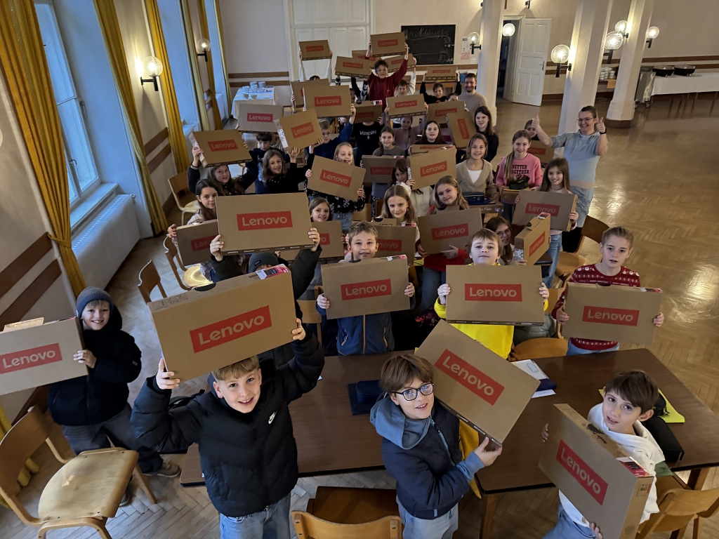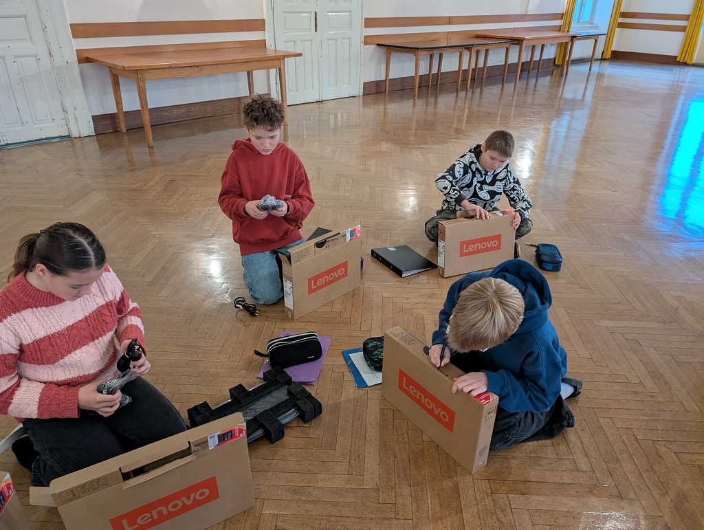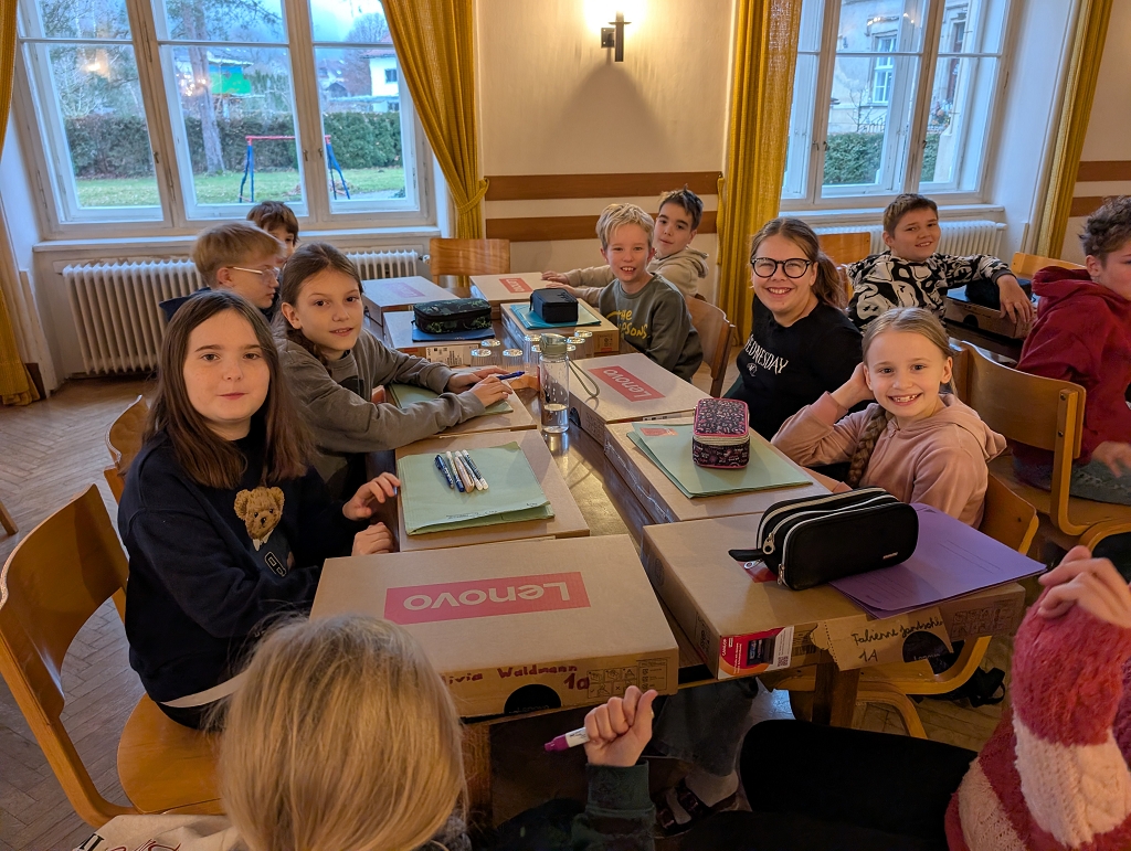 In der darauffolgenden Stunde wurden die Laptops gemeinsam für die Verwendung im Unterricht eingerichtet. Großer Jubel herrschte, als am Ende auf den Bildschirmen das ersehnte „Willkommen!“ erschien.
