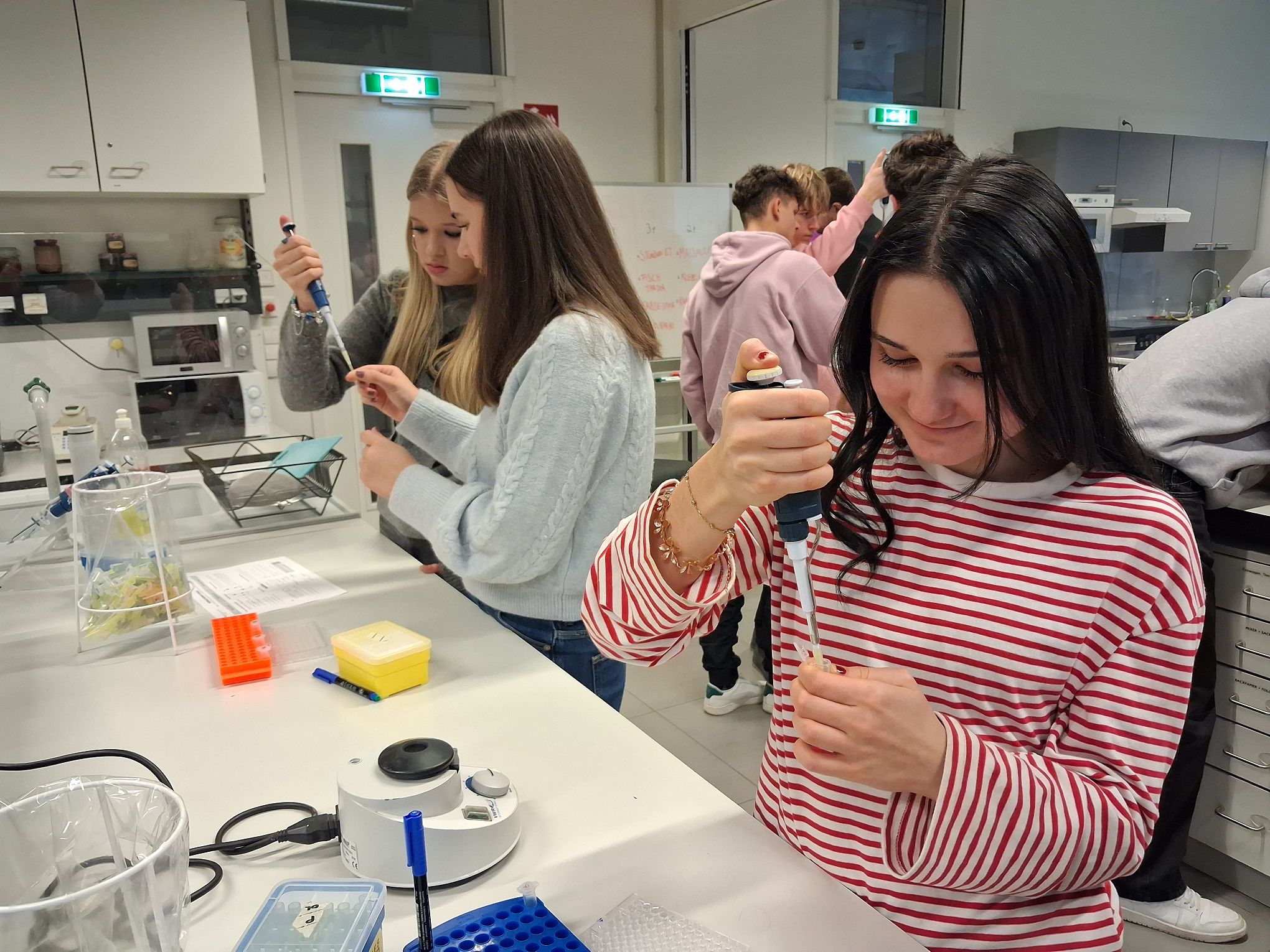 Im Anschluss arbeiteten wir selbst im Labor. In Gruppen untersuchten wir verschiedene Lebensmittel auf genetische Veränderung. Mein Team analysierte einen Kornspitz, andere Gruppen testeten Zwiebel, Knoblauch und Soja, wobei bekannt war, dass das Soja genetisch verändert ist. Dadurch konnten wir die theoretischen Inhalte praktisch anwenden.