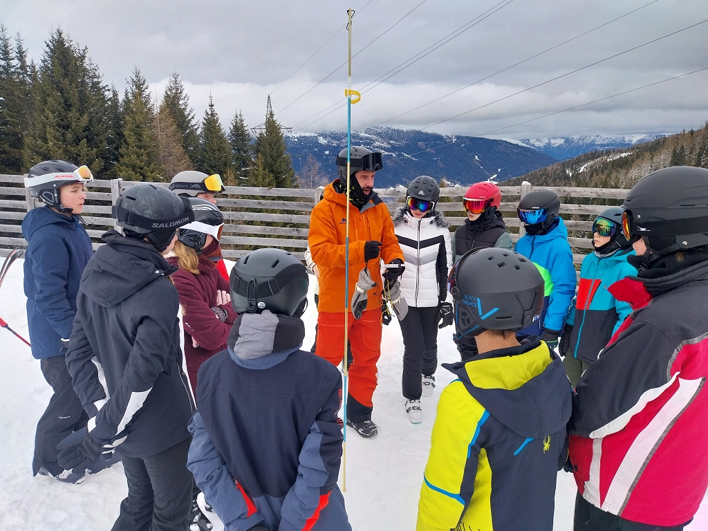 Erste Hilfe, Lawinenkunde und die Pistenregeln wurden vom AUVA-Safety-Guide mit einem interessanten abendlichen Vortrag und mit praktischen Übungen auf der Piste vermittelt.