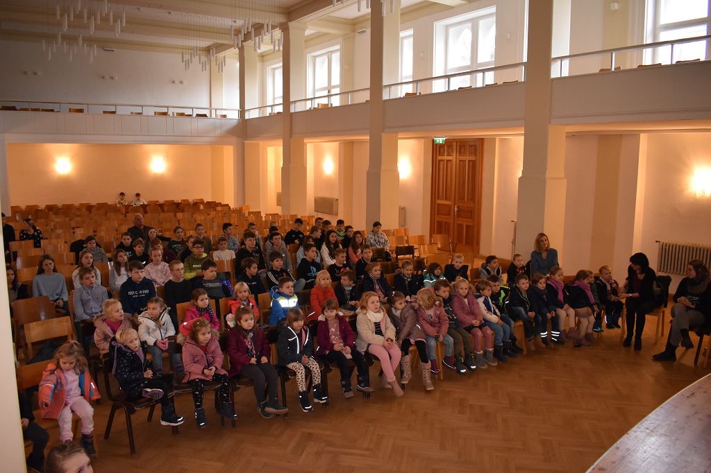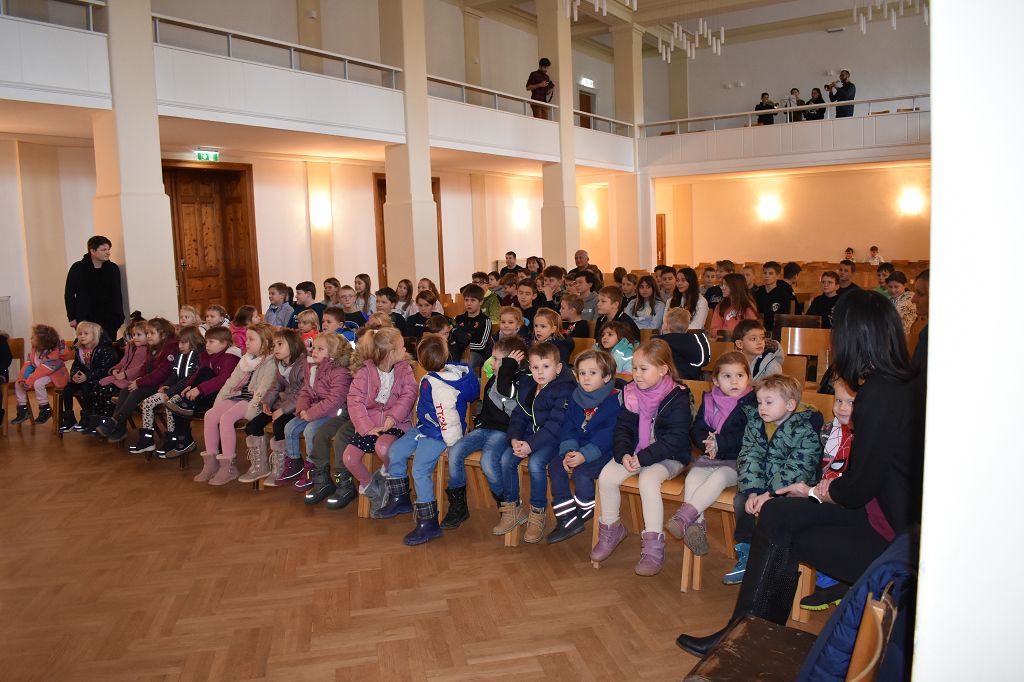 Die Kindergartenkinder wurden von Frau Direktor Mag. Ines Leschirnig-Reichel begrüßt und jedes Kind wurde mit einem Engel, welcher im Werkunterricht bei Prof. Evelyn Friesacher gestaltet wurde, beschenkt.