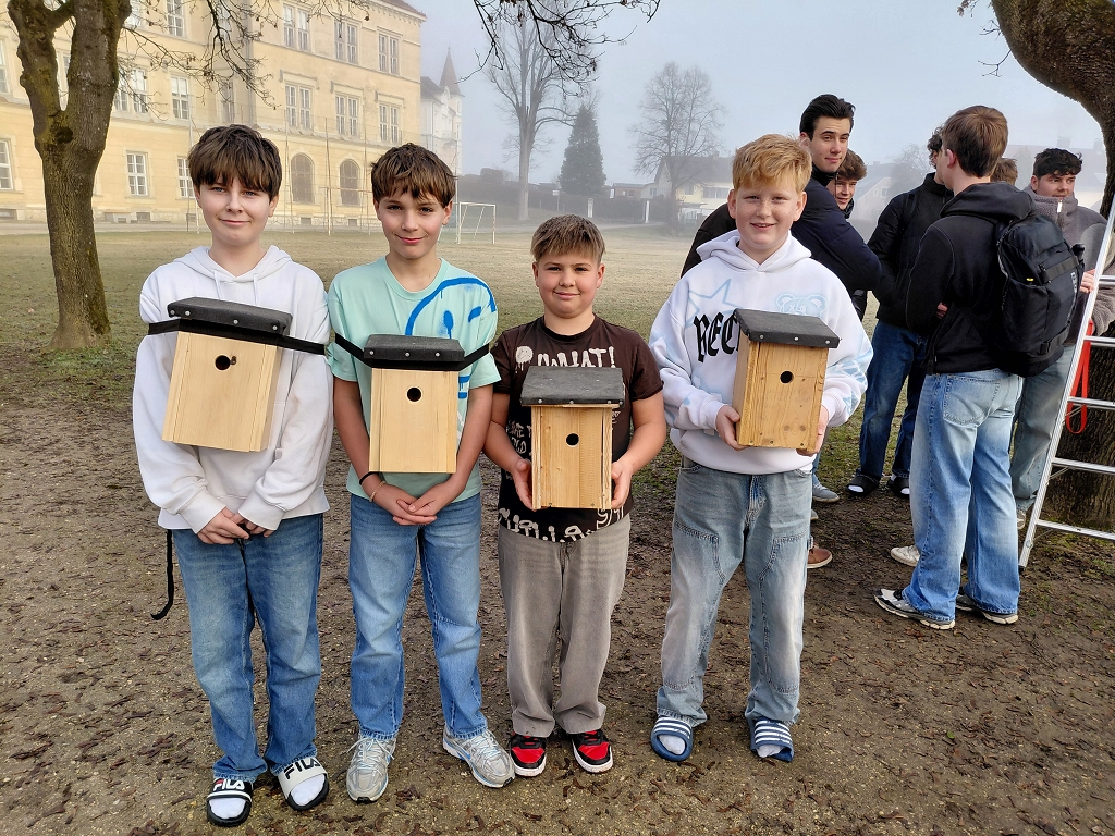 Als Ökolog-Schule ist es dem Stiftsgymnasium St. Paul ein großes Anliegen, naturnahe Projekte mit Schülerinnen und Schülern umzusetzen. So wurden im Vorjahr im Werkunterricht der ehemaligen 3. Klassen unter der Anleitung von Mag. Evelyn Friesacher Nistkästen gebaut.