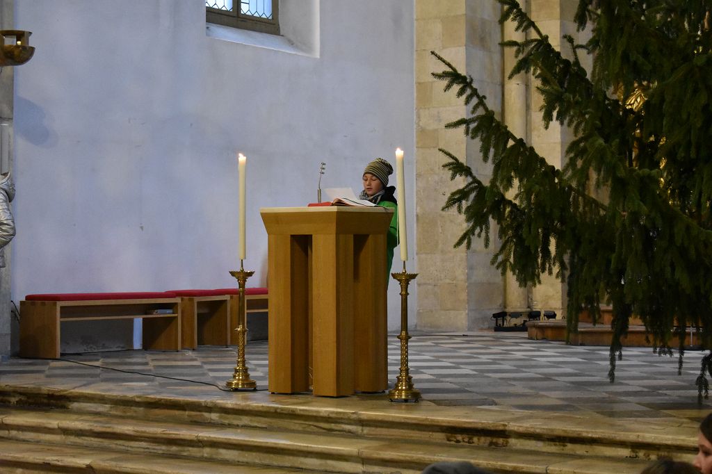 Euch, liebe Schülerinnen und Schüler, liebe Kolleginnen und Kollegen, die ihr die Fürbitten verfasst, das Wort Gottes verkündet, die Frohbotschaft der Geburt unseres Herren lebendig gemacht und die Feier mit Lied und Spiel so festlich gestaltet habt – euch sei hier gedankt – denn Feier heißt Gemeinschaft – und Euer Werk hat diese Feier erst in dieser Form ermöglicht.