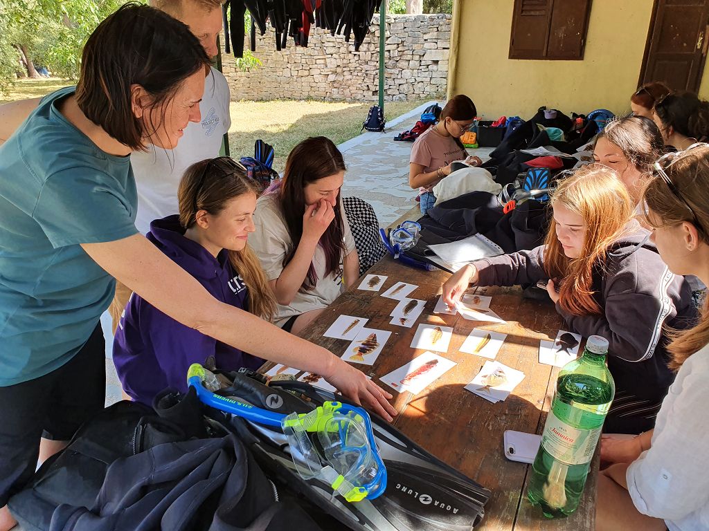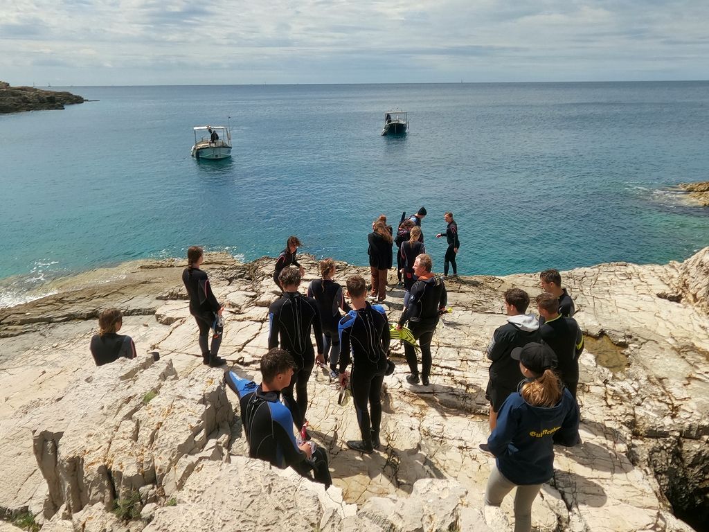 Die täglichen Einheiten, geleitet von der Meeresschule Pula, setzten sich durch die Vorbesprechung, dem Schnorcheln und der Nachbesprechung zusammen. Dadurch konnten die Schüler und Schülerinnen den Lebensraum des adriatischen Meeres nicht nur entdecken, sondern auch verstehen. Ausgerüstet mit Taucherbrille, Schnorchel, Neoprenanzug und Schwimmflossen wurden verschiedene Bereiche des Meeres, unter anderem auch die einer Grotte, erkundet. Ebenso erhielten die SchülerInnen zahlreiche Informationen zu der Küste des Meeres und ihren Bewohnern. Gemeinsam mit einer Gruppe aus der BAfEP aus Klagenfurt wurde unter den TeilnehmerInnen ein großes Interesse an der Unterwasserwelt entwickelt.