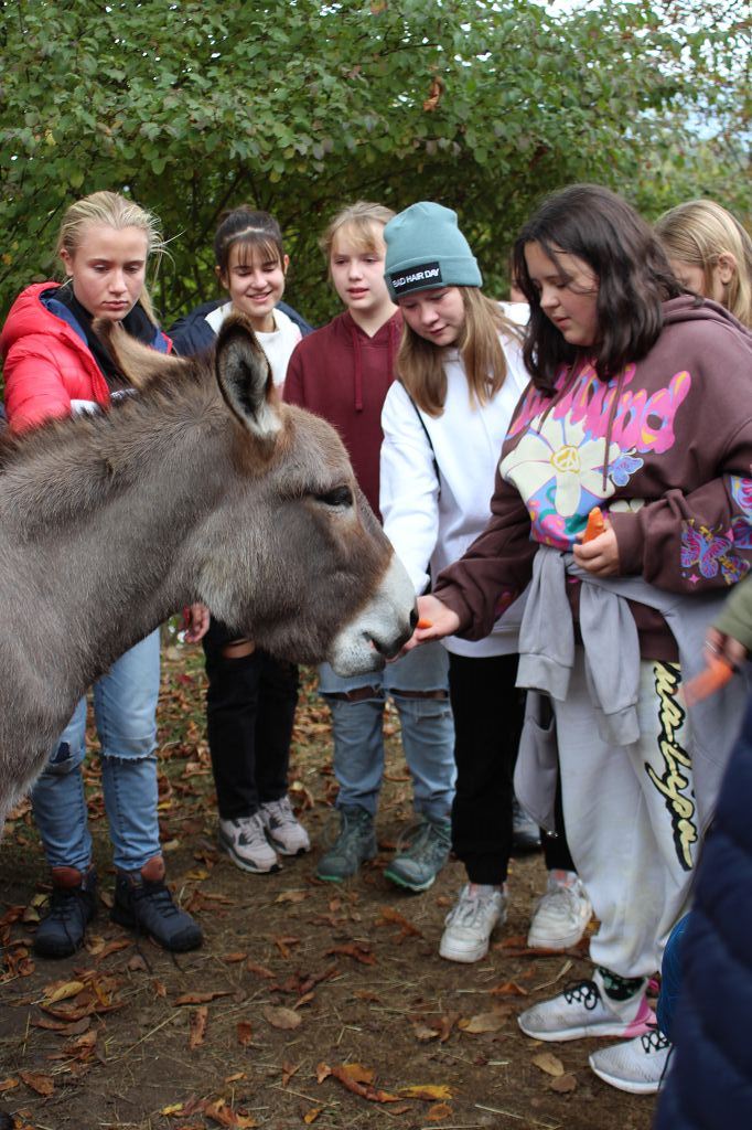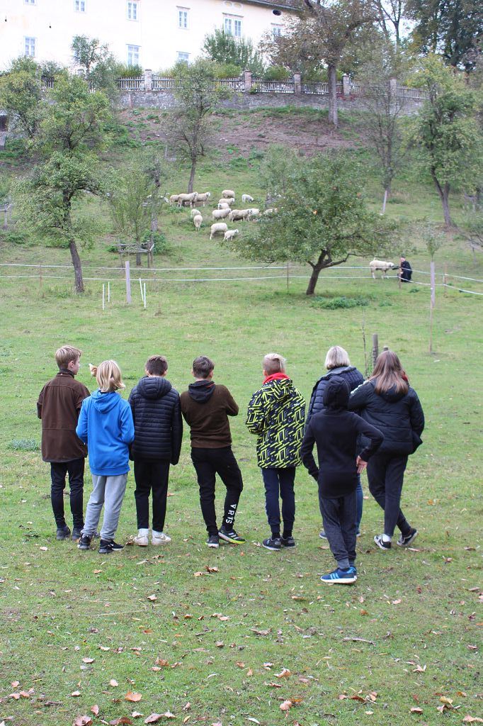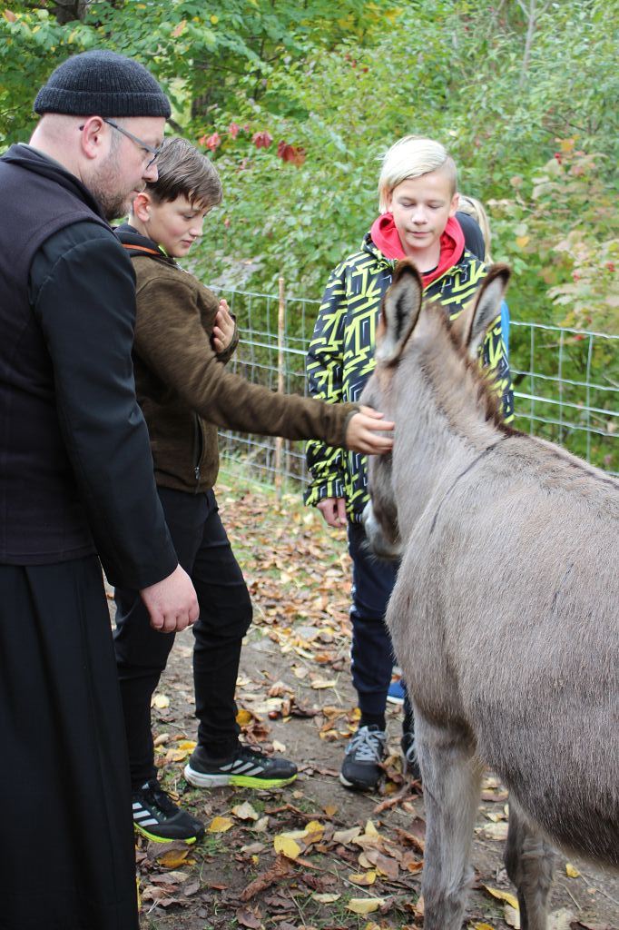 Auch Stiftsadministrator Mag. P. Marian Kollmann ließ es sich nicht nehmen, die Schüler persönlich durch den Außenbereich des Stiftes zu führen und alle Fragen zum Klosterleben und zum Stift, aber auch zu den stiftseigenen Eseln, Schafen, Hühnern und Bienen zu beantworten.