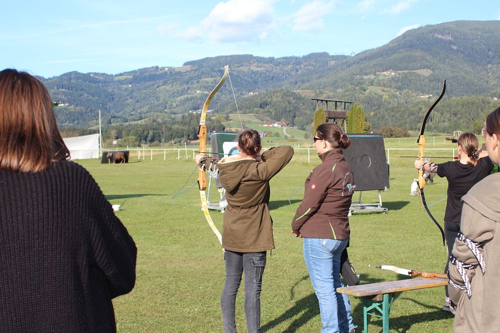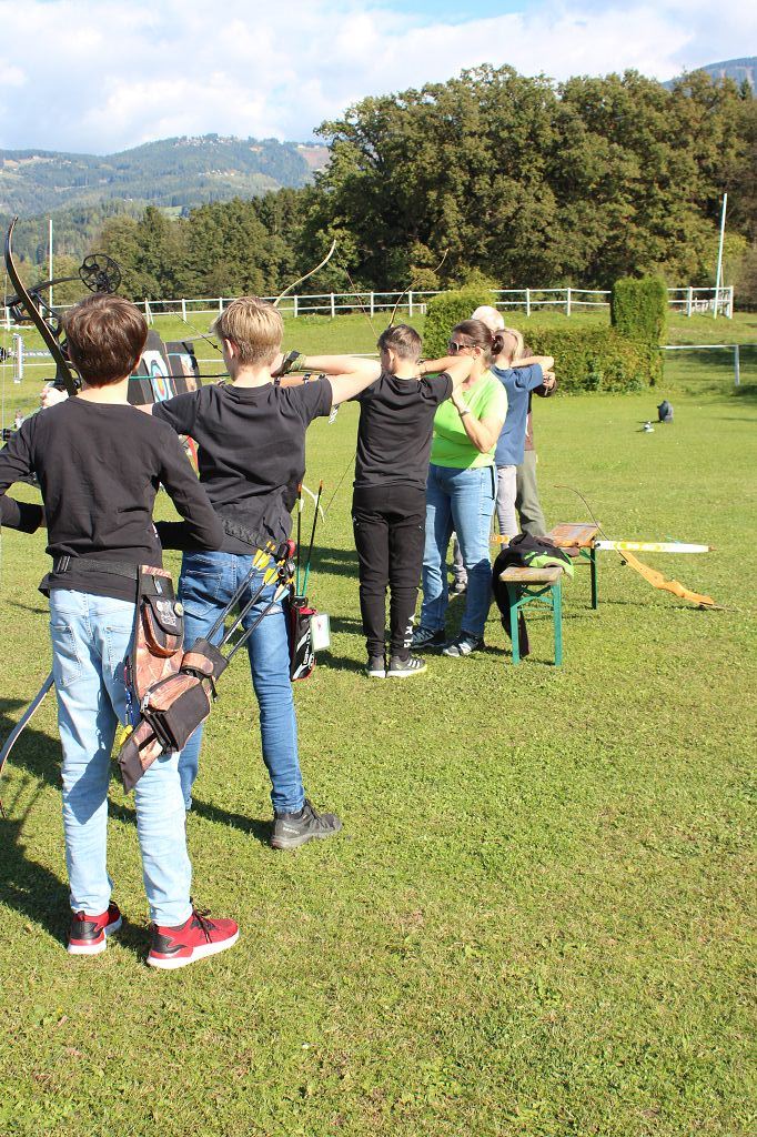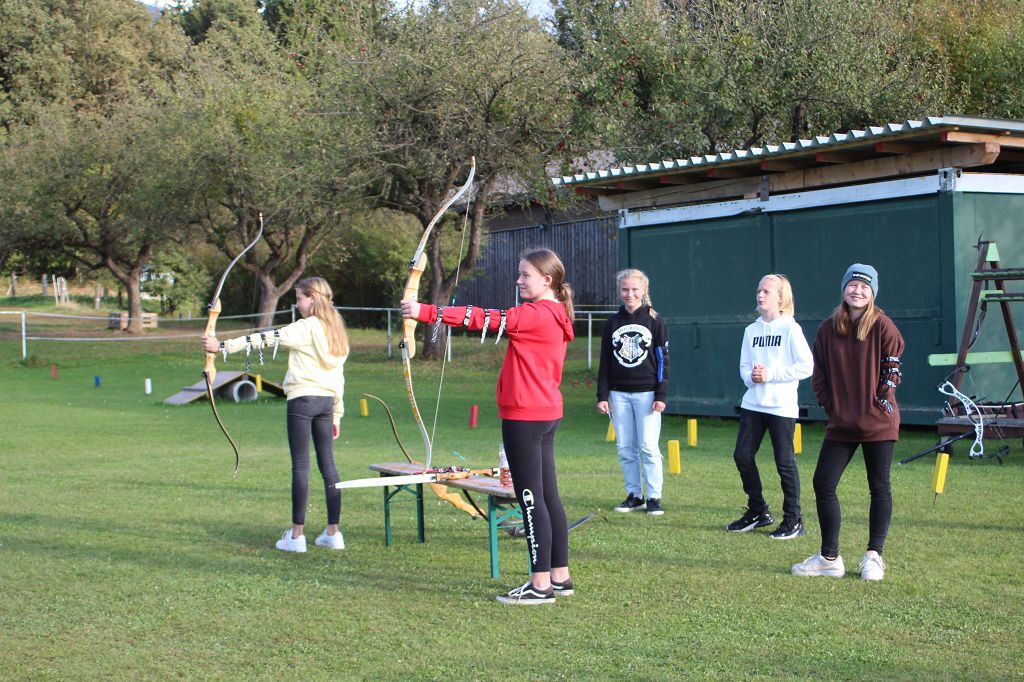 Gestärkt nach einem Mittagessen im Stift ging es am Nachmittag zum Bogenschießen nach St. Stefan. Walter und Karin Moitzi vermittelten in drei Stunden die Grundkenntnisse des Bogenschießens. Für den perfekten Schuss waren eine ruhige Hand und vor allem viel Konzentration gefragt. Beim abschließenden Wettbewerb gingen Lucia Komar und Niklas Gallant als Sieger hervor.