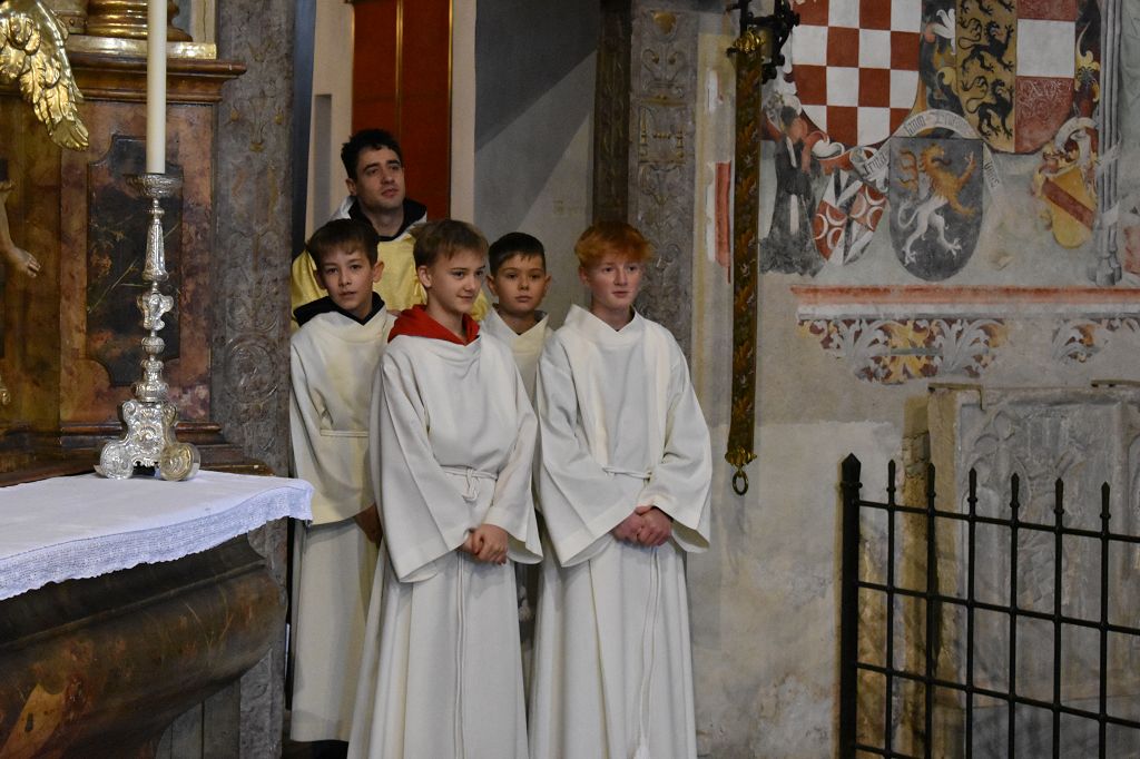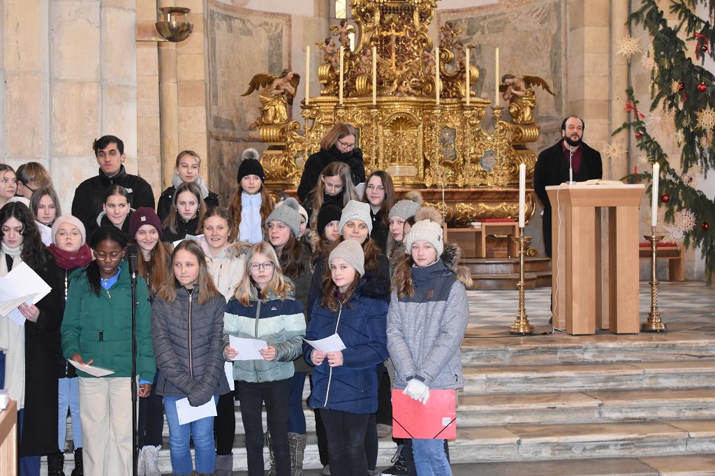 Dieses Jahr durften wir die Messe mit Pater Romanus Kribernegg feiern und dieser fand eindrucksvolle Worte über das Wesen des Glaubens, während die Schüler:innen die Dienste als Lektoren übernahmen. Nachdem jedoch eine Feier ohne Musik nur ein halbes Fest wäre, wurde die Messe erneut vom Bläserensemble unter der Leitung von Professor Thomas Zdravja und dem Schulchor unter der Leitung von Professorin Almut Wakonig-Dalton mitgestaltet.