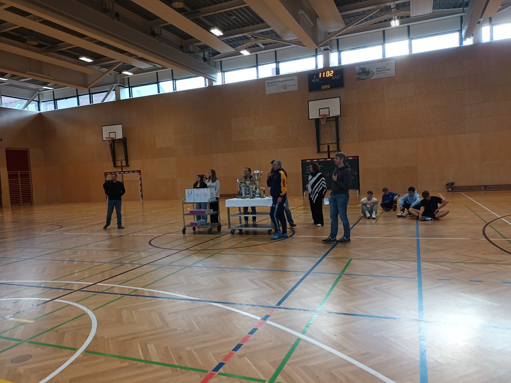 Leider wurde Maximilian Gerstl beim letzten Spiel verletzt und fiel damit für die Finalspiele der Oberstufe aus, ebenso musste Jakob Wuggenig am Sonntag pausieren. Und so hieß es umdisponieren: Matthias de Monte wurde für die Spiele der Mittelstufe und Oberstufe eingesetzt und Leon Samitsch spielte in der Mittelstufe 2.