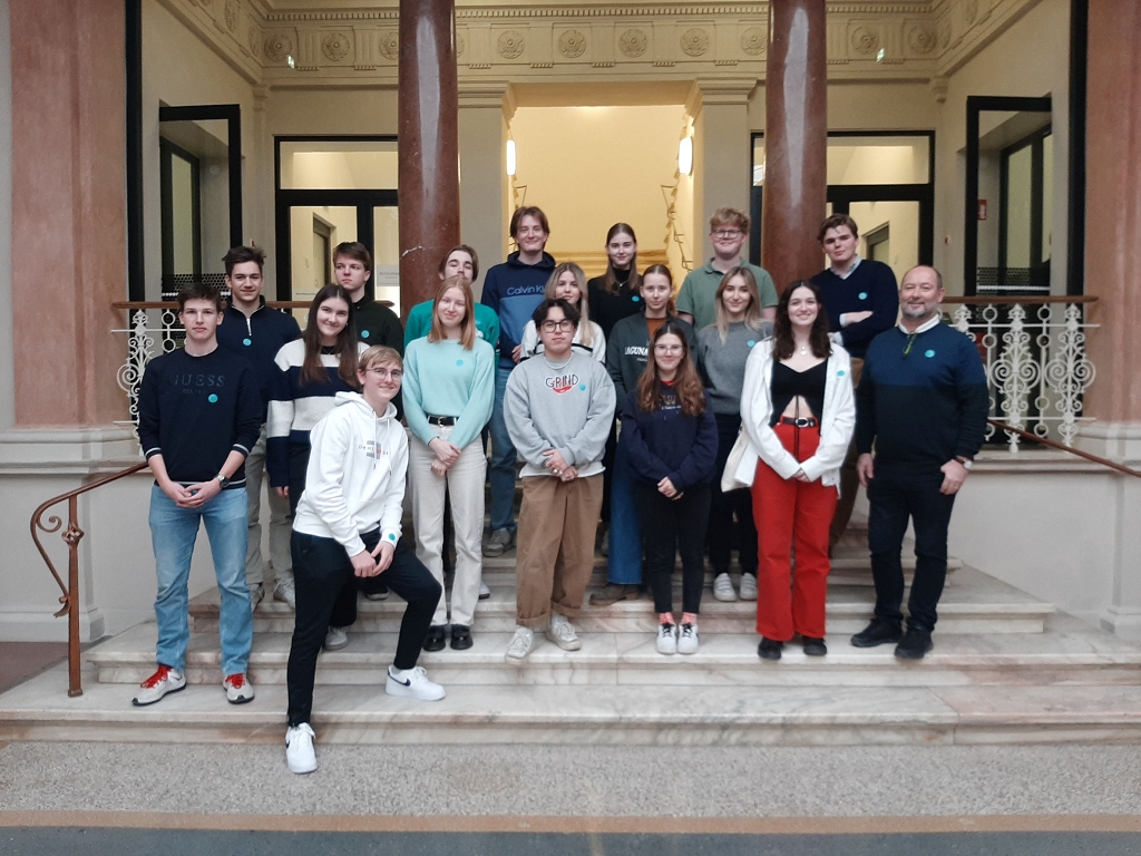 Nachdem Ende 2022 das ehemalige „Rudolfinum“, wie man das Landesmuseum Kärnten seit seiner Eröffnung wegen des Besuchs von Kronprinz Rudolf genannt hat, in neu durchdachtem Konzept der breiten Bevölkerung wieder zugänglich gemacht worden war, war es nur eine Frage der Zeit, bis sich auch die Schülerinnen und Schüler des WPF-GPB dieses museale Highlight Kärntens nicht entgehen ließen. Schon der erste Eindruck des Gebäudes, das allen MaturantInnen bis dato unbekannt geblieben war, war sehr positiv und die mächtige bronzene Eingangstür ließ fast römische Erinnerungen wach werden. Unser Guide, Fr. Anna Pinter BA, geleitete die Gruppe von der Eingangshalle mit innovativer Lichtinstallation durch die einzelnen Räume des zweistöckigen Museums. Beeindruckend zeigten sich die Ausstellungsobjekte des ehemaligen Lapidariums, nun an den Wänden des überdachten Innenhofes zentral angebracht, um von den Arkadengängen der Stockwerke aus bestens betrachtet und eventuell gar gelesen zu werden.