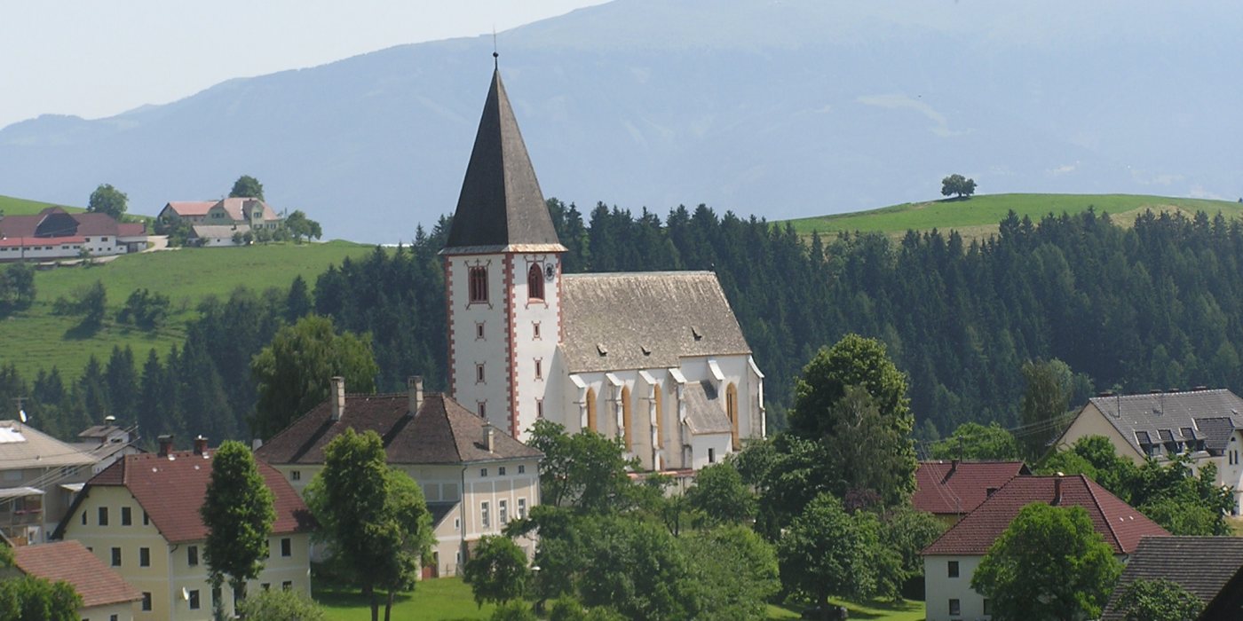 gründete Amelbert von Kollnitz die Kirche, die Mittelpunkt einer der Lavanttaler Urpfarren wurde. Im Wesentlichen ist der Bau gotisch und in vielen Details haben sich Elemente dieser Epoche erhalten, obwohl die Barockzeit einige Veränderungen brachte. Der Chor ist von Strebepfeilern umschlossen, die das Bauwerk nach Osten zu schützen scheinen. Der von einem Pyramidendach gedeckte Turm zeigt im Glockengeschoss schöne Maßwerkfenster, die aus dem 15. Jahrhundert stammen.